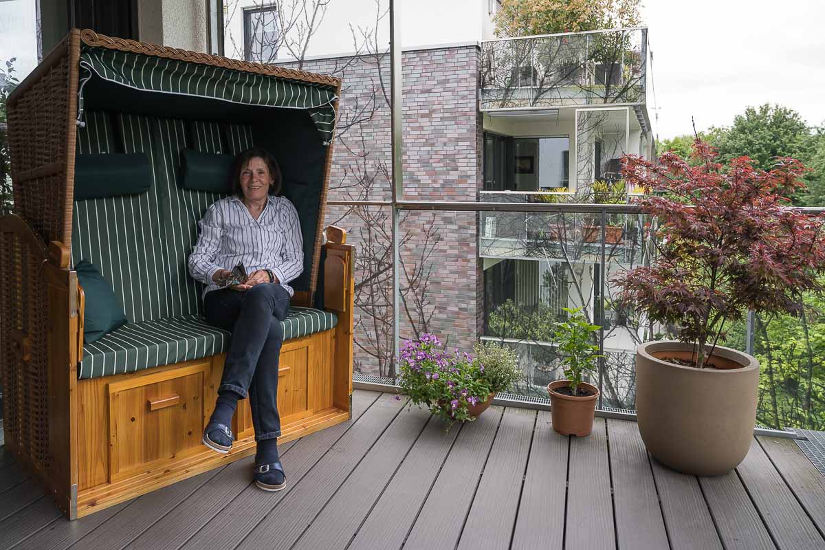 Ach ja, der Strandkorb machte sich auf dem Balkon ganz gut. Am nächsten Tag, es war Christi Himmelfahrt und trübes Wetter, machte ich noch zwei Bilder damit man auch sehen kann warum dieser Blog-Beitrag zustande kam. Mit dem Button kann zwischen den beiden Bildern gewechselt werden.