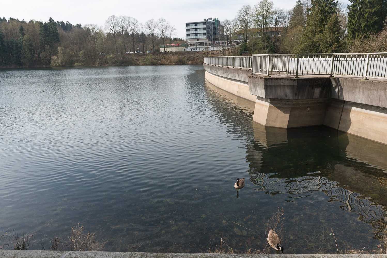Es war Freitag und wir wanderten so kurz vor 12 Uhr los. Gleich zu Beginn überquerten wir die Staumauer der Talsperre. Sie ist die älteste Trinkwassertalsperre Deutschlands. Sie wurde 1891 eröffnet, damals hat sie 536.000 Mark gekostet.