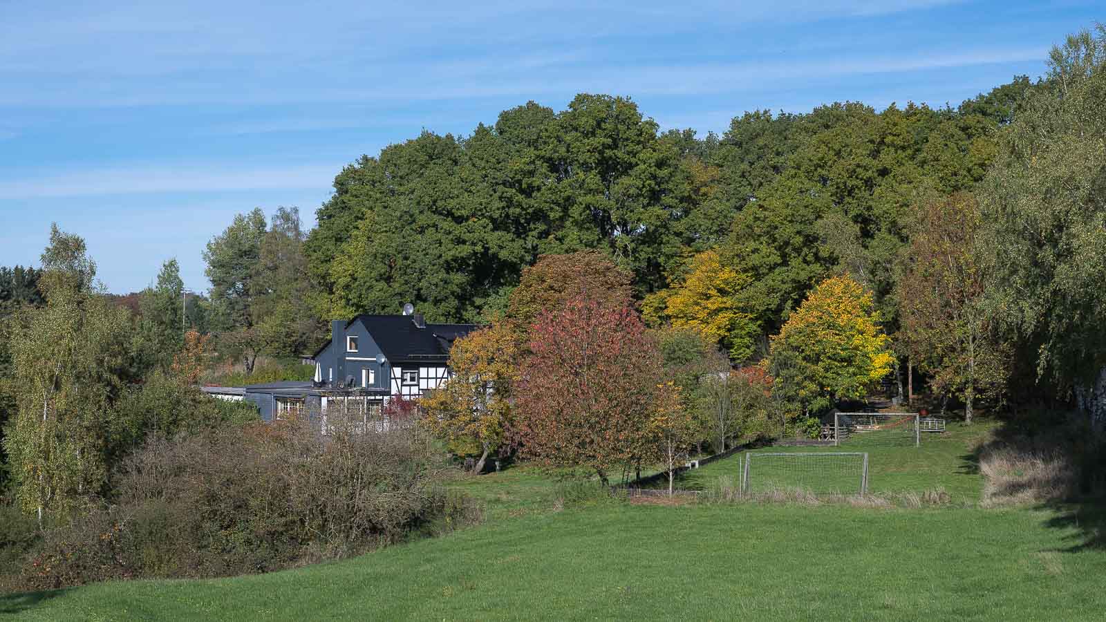 Zwischen Hündekausen und dem nächsten Örtchen Wellerscheid lag das Restaurant Heidestübchen. Der große Patkplatz war nur mit einem Lieferwagen belegt. Neugierig geworden googelte ich das Restaurant. Die hatten „laut Dr. Google“ doch angeblich tatsächlich geöffnet. Ein kurzes Stück später begegnete uns die einzige Spaziergängerin die wir auf unserer Runde trafen. Die Dame führte ihren Hund aus. Auf meine Nachfrage hin bestätigte sie : „Ja, das Heidestübchen, das müßte geöffnet haben“.