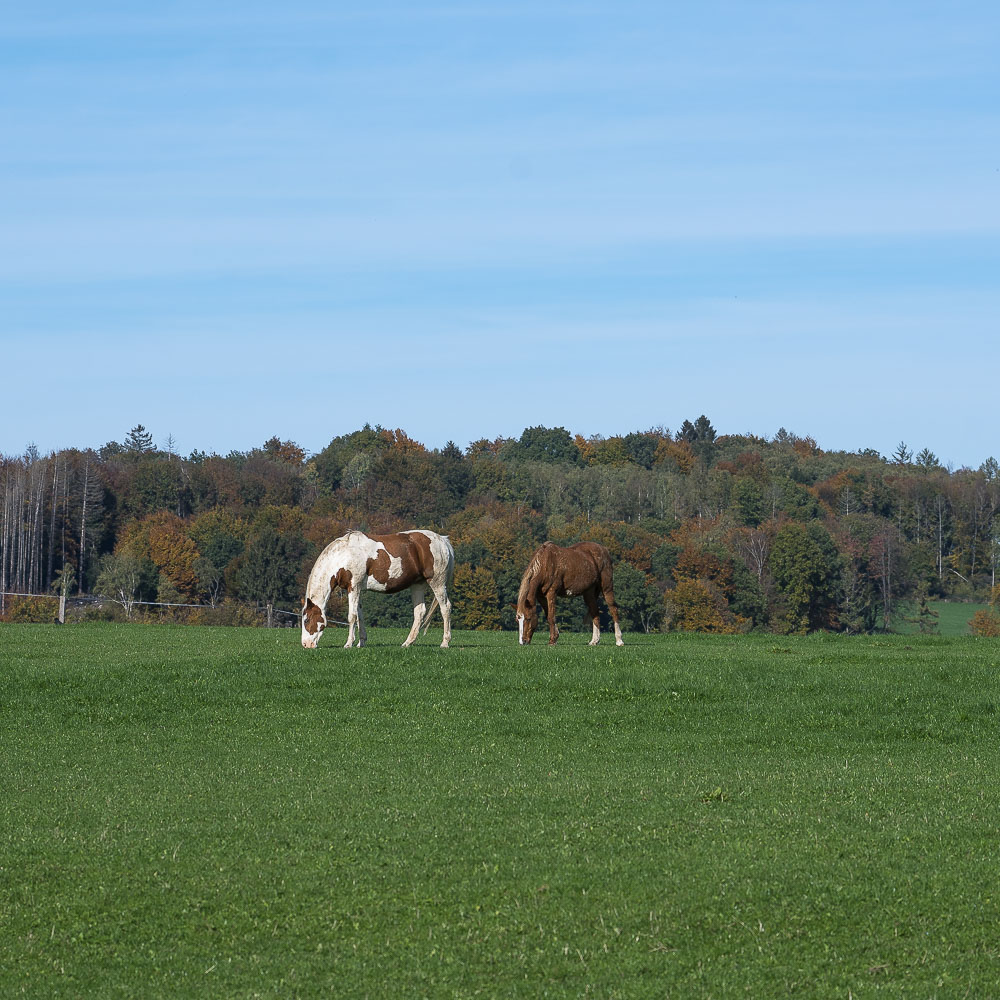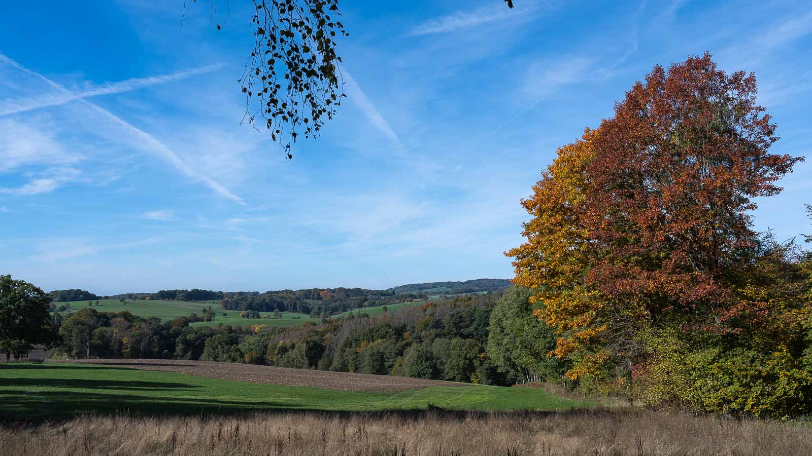 Frisch gestärkt starteten wir den Rest der Strecke. Wir wanderten vornehmlich über offenes Gelände und genossen die Aussicht über das hügelige Land dessen Wälder sich langsam golden verfärbten. Das Wetter passte dazu.