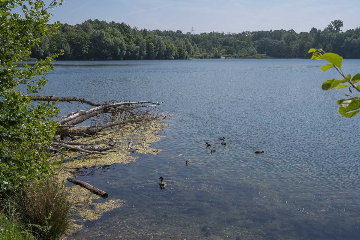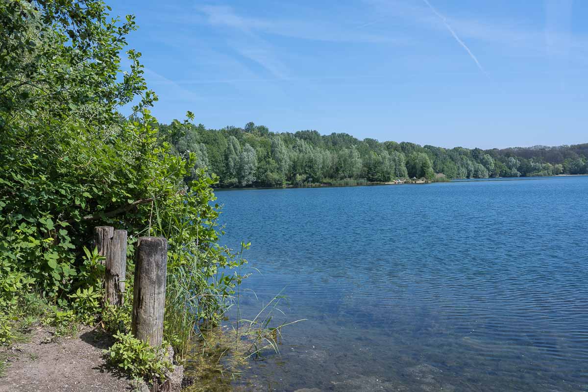 Der Rundweg um den See ist wirklich schön, es waren zahlreiche Spaziergänger, Gassi-Geher, Jogger und Radfahrer unterwegs. An einer Stelle gab es einen richtigen Strand an dem sich schon die ersten Sonnenanbeter niedergelassen hatten.