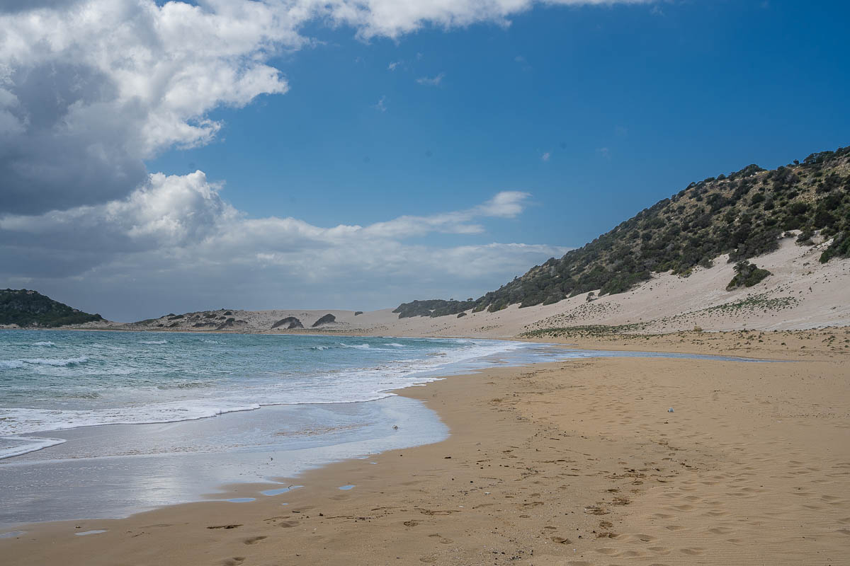 Fast am äußersten Nordosten der Insel wartete das St. Andreas Kloster auf uns. In der Umgebung des Klosters gibt es zahlreiche wild lebende Esel, die sich auf Touristen spezialisiert haben. Die cleveren Tiere sind in der Lage Autos und Busse zu stoppen indem sie die Straße blockieren und diese erste wieder frei machen wenn sie ein Leckerlie bekommen haben. Uns haben sie unterwegs nicht bedrängt, lediglich auf dem Parkplatz wurde eine Touristin angebettelt.