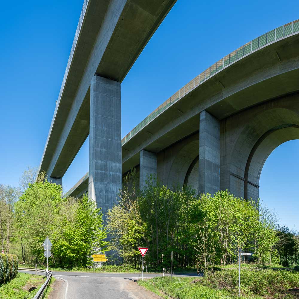 Nach etwa 1.5 km überquerte ich erneut die Wied. Dieses Mal über eine Hängebrücke die nur für Fußgänger ausgelegt war (siehe Bild). Auf der anderen Flußseite ging es auf dem Wiedweg weiter. Zunächst über einen herrlich gelegenen Camping- bzw. Wohnwagenstellplatz. Danach ging es etwas bergauf und nach knapp 3 Kilometern unterquerte ich die Autobahnbrücke der A3 und die der ICE-Strecke Frankfurt-Köln. Beides riesige Bauwerke die ich bisher nur von oben kannte und die ich zahllose Male überquert habe. Das letzte Mal wurde ich dabei geblitzt und mußte 20 Euro zahlen.
