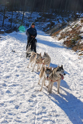 Im Winter 2009 hatten wir jede Menge Schnee. Damals wohnten wir noch in Burscheid-Ösinghausen. An der nahe gelegenen Sengbachtalsperre begegnete uns ein Hundeschlittengespann. Der Hundeführer machte das richtig professionell. Wie er uns sagte, nahm er auch an entsprechenden Wettkämpfen teil.
