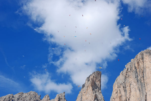 Im September 2009 machten wir ein Wanderurlaub im Fasstal, Südtirol. Hier waren einige Drachenflieger unterwegs. Die zeigten, das das Leben auch unter den Wolken sehr schön sein kann.