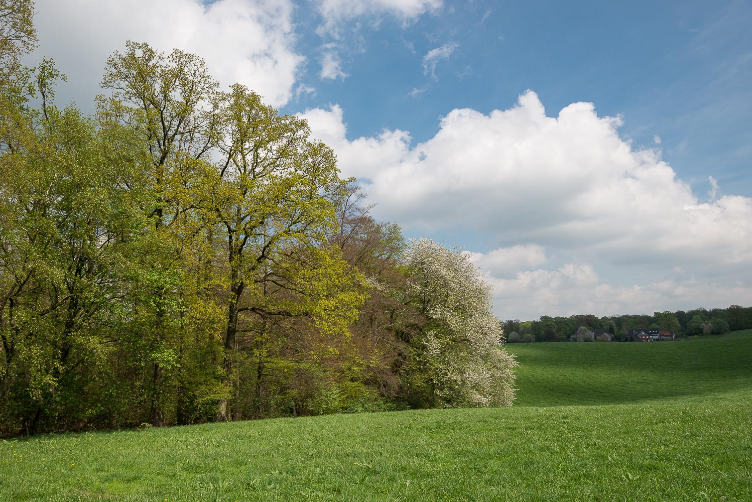 Auf der Höhe angekommen konnte ich die frühlingshafte Landschaft genießen. Das Wetter wurde langsam auch immer besser. Besonders die blühenden Wiesen waren Klasse. Das „weisse Zeugs“ ist laut Petra Wiesenschaumkraut (sagte Sie mir als ich wieder zu Hause war). Aber auch von einigen blühenden Kirschbäumen war ich begeistert.