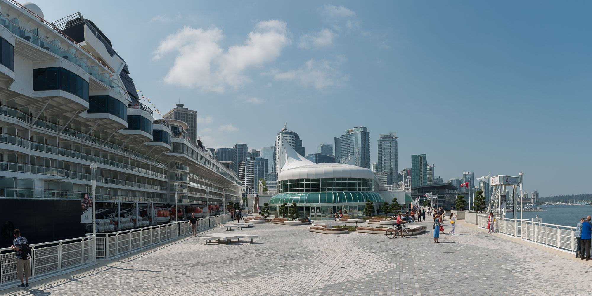 Am nächsten Morgen starteten wir nach dem Frühstück im Hotel über die Granville Street zur Waterfront. Danach ging es hinauf zum Vancouver Lookout. Den sollte man nicht verpassen wenn man in Vancouver ist und das Wetter eine Aussicht zuläßt. Dies war heute der Fall, auch wenn es in der Ferne etwas diesig war. Man hat einen spektakulären Ausblick über die Stadt und die ganze Bucht. Anschließend gingen wir durch die Water Street und besichtigten die Steam Clock. Dies ist eine mit Dampf angetriebene Uhr. Die Water Street ist zum flanieren ganz gut, wenn auch ziemlich touristisch. Danach ging es weiter zum Canada Place. Hier war, bzw. ist der kanadische Pavillon der Weltausstellung 1986. Dort machten wir dann Mittagspause und verzehrten unsere Mitbringsel aus dem Urban Fare. Anschließend gab es in einem nahegelegenen Cafe noch einen Cappuccino für Petra. Frisch gestärkt wanderten wir weiter am Ufer entlang. Kurz vor Erreichen des Stanley Parks bogen wir links ab in Richtung Robson Street, die wir dann runter liefen. Am Ende liegt der sehr schöne Robson Square wo dann auch einige Bilder entstanden.