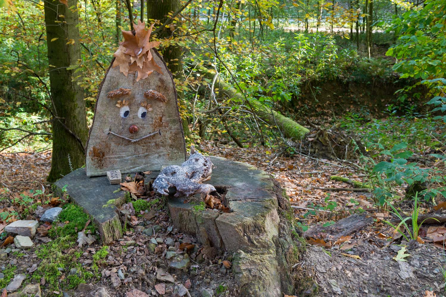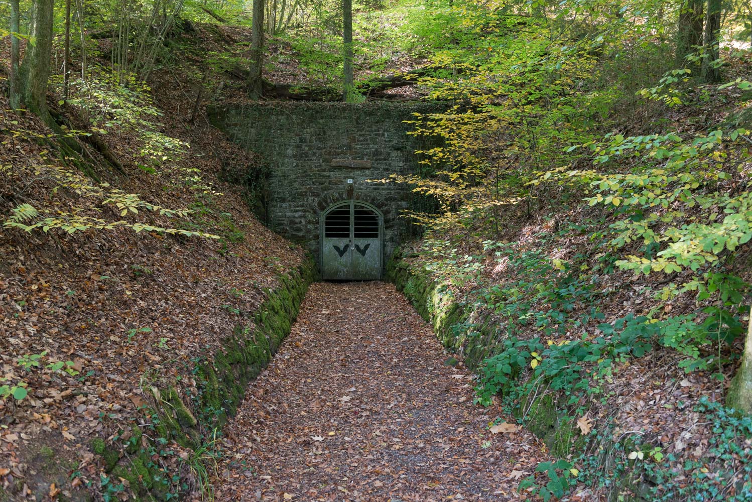 Wir hingegen überquerten bald die Agger über eine Fußgängerbrücke und schwenkten schon bald in den Wald ein. Der Weg ging oberhalb des Walbaches zu den Aggertalhöhlen die wir besichtigen wollten. Dort standen wir aber vor verschlossenen Türen, die haben nur ab Donnerstag bis incl. Wochenende geöffnet.