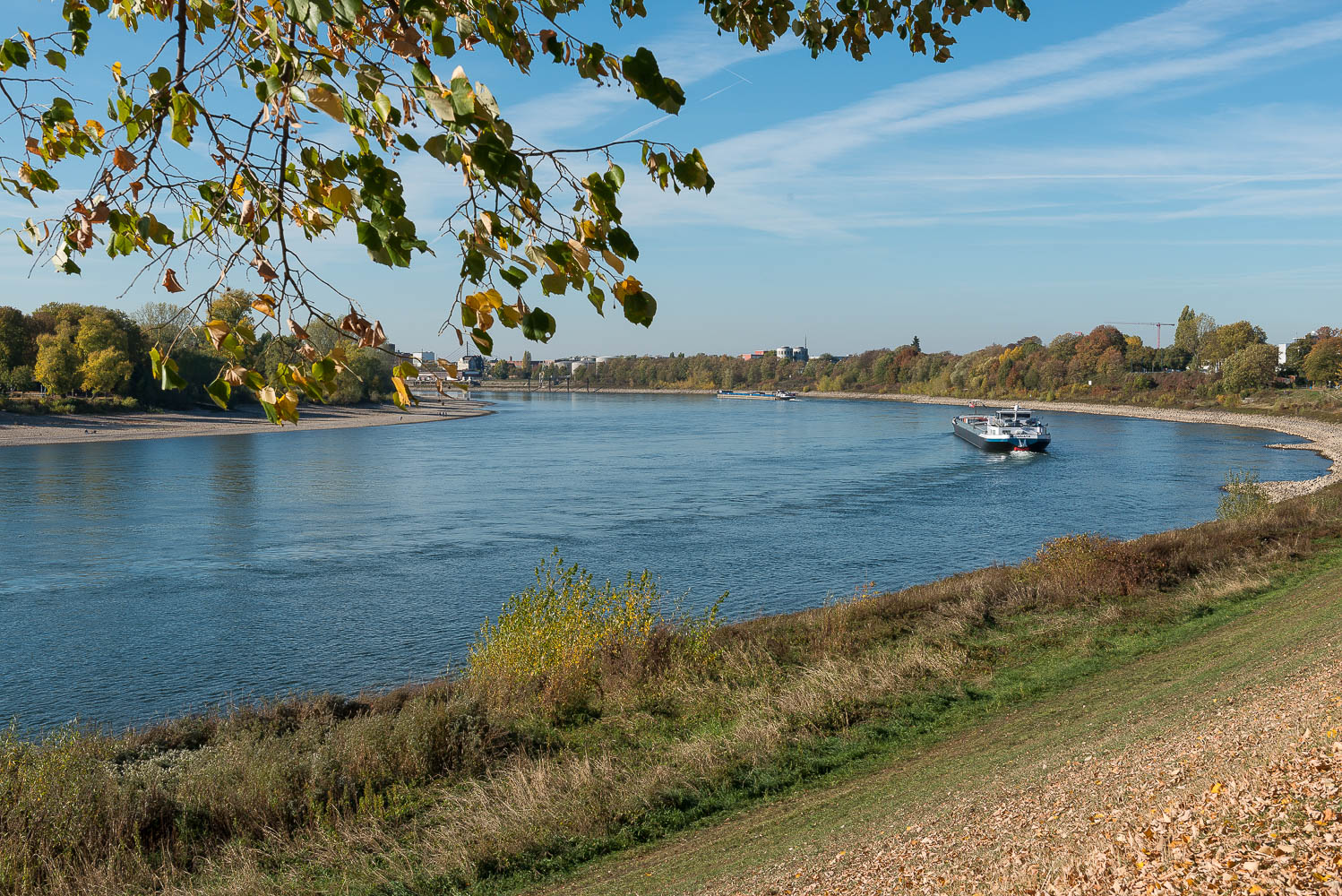 Vom Wagen aus waren wir in 5 Min. am Rhein. Hier war was los !!! Ganze Heerscharen nutzten das schöne Wetter und genossen die Nachmittagssonne am Rhein. Dort waren alle Bänke belegt und es herrschte reger Fahrradbetrieb. Alles ganz anders als bei meinen Touren im bergischen Land.
