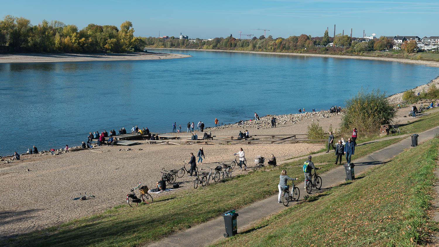 Das letzte Wegstück führte wieder am Rhein entlang zurück zu unserem Wagen. Die Bänke waren immer noch alle besetzt und es es herrschte weiterhin reger Verkehr.