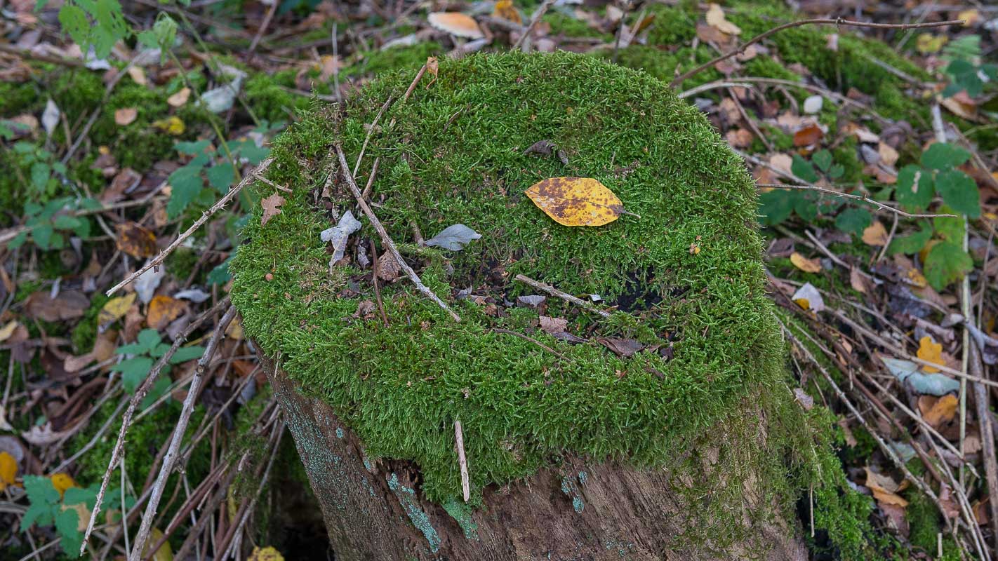 Wir suchten uns eine Entdeckerschleife aus und wollten diese anhand der Wegzeichen nachlaufen. Die Karte auf meinem Navi diente dabei als Hilfsmittel. Der Weg führte uns leicht bergan auf breitem Waldweg durch einen wunderbaren Herbstwald. Die Ausschilderung war bestens und die Sparkasse Velbert hatte für zahlreiche Bänke gesorgt.