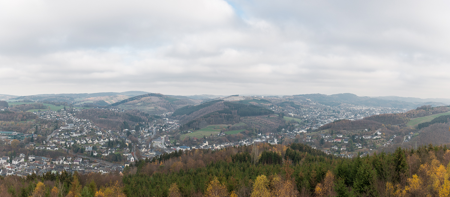 Zur Hälfte der Wanderstrecke machte ich einen Abstecher zu dem Aussichtsturm am Dornberg. Von hier hat man einen schönen Ausblick in Nordwestliche Richtung. Leider zog es sich immer mehr zu. Teilweise sah es sogar nach Schnee aus. Meine Neigung zum fotografieren nahm daher weiter ab und ich beschleunigte meine Schritte.