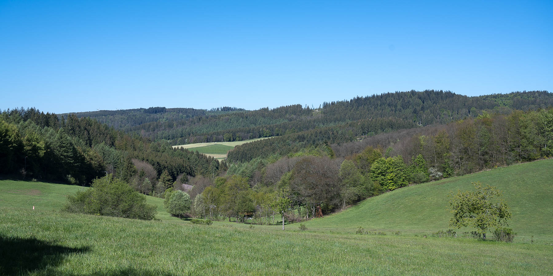 Aus den Seelenwanderungen des Bergischen Landes hatte ich mir die Nr. 13 raus gesucht. Im Wildenburger Land wird diese Runde zwischen dem Schloss Crottorf und der Wildenburg gedreht. Die Anfahrt ist zwar relativ lang, führt aber überwiegend über A3 / A 4. Nur die letzten 13 km gehen über Landstrasse.