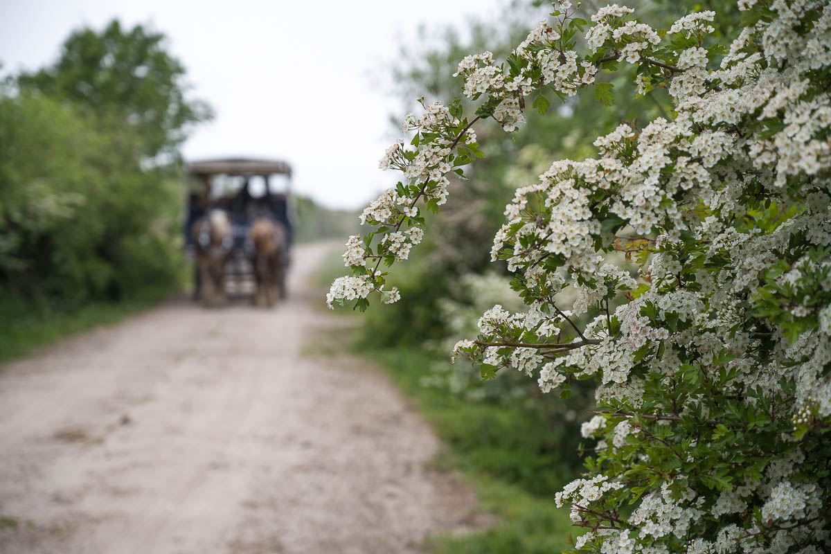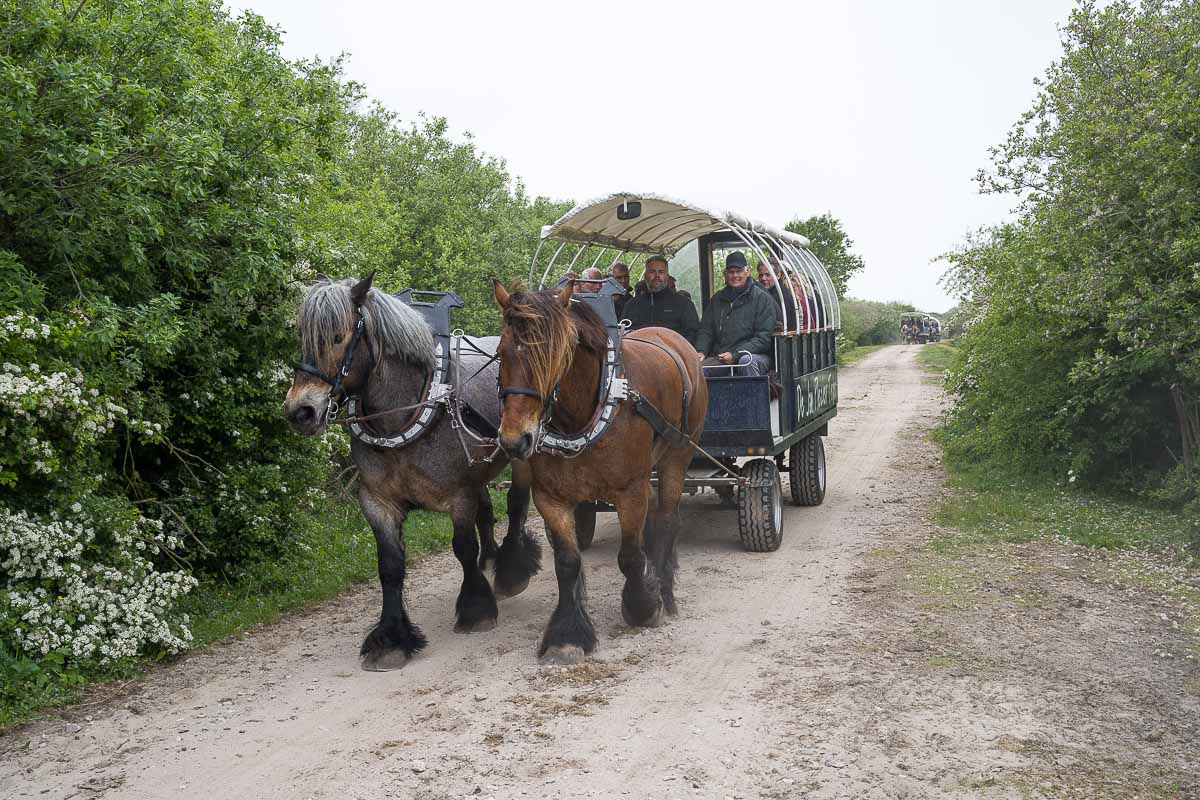 Unterwegs kamen uns einige Pferdegespanne mit angehängten Wagen entgegen. Man kann die Tour (zumindest teilweise) auch mit der Pferdekutsche machen. Mindestens 4 Gespanne sind uns begegnet. Später sahen wir dann auch noch Spuren am Strand wo die entlang gefahren sind.
