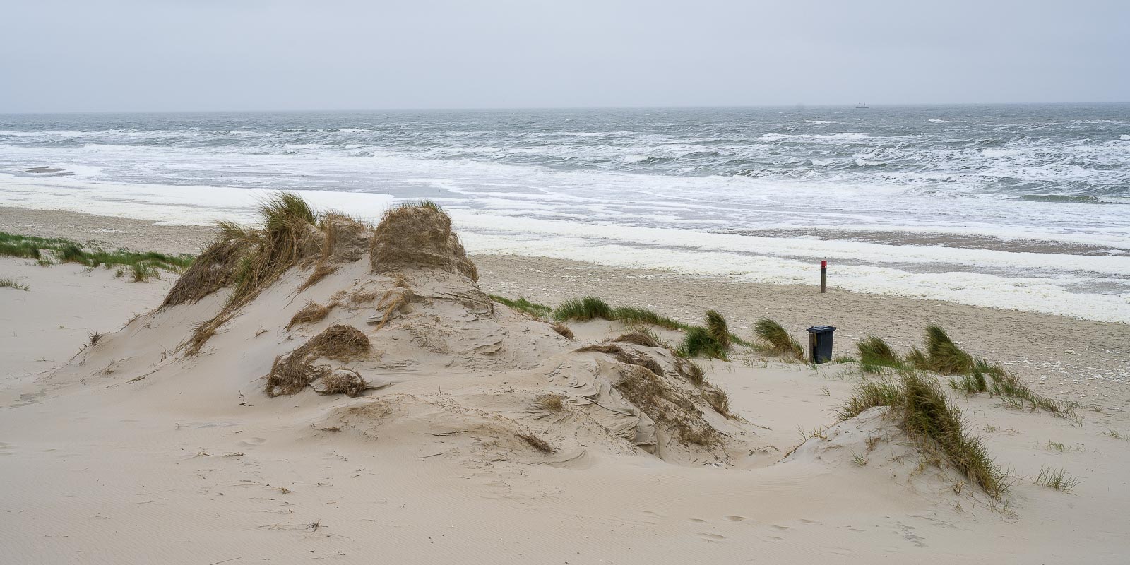 Bei Paal 21 schlugen wir den Weg landeinwärts ein, aber nicht ohne an dem dortigen Kaffee ein kleines, verdientes Päuschen zu machen. Der Wind und der sandige Untergrund hatte uns doch etwas ermattet. In dem Kaffee sahen wir einige Wanderer die durch den Meeresschaum gelaufen waren. Ohne Gamaschen würde ich das nicht empfehlen, so „eingesaut“ sahen die aus.