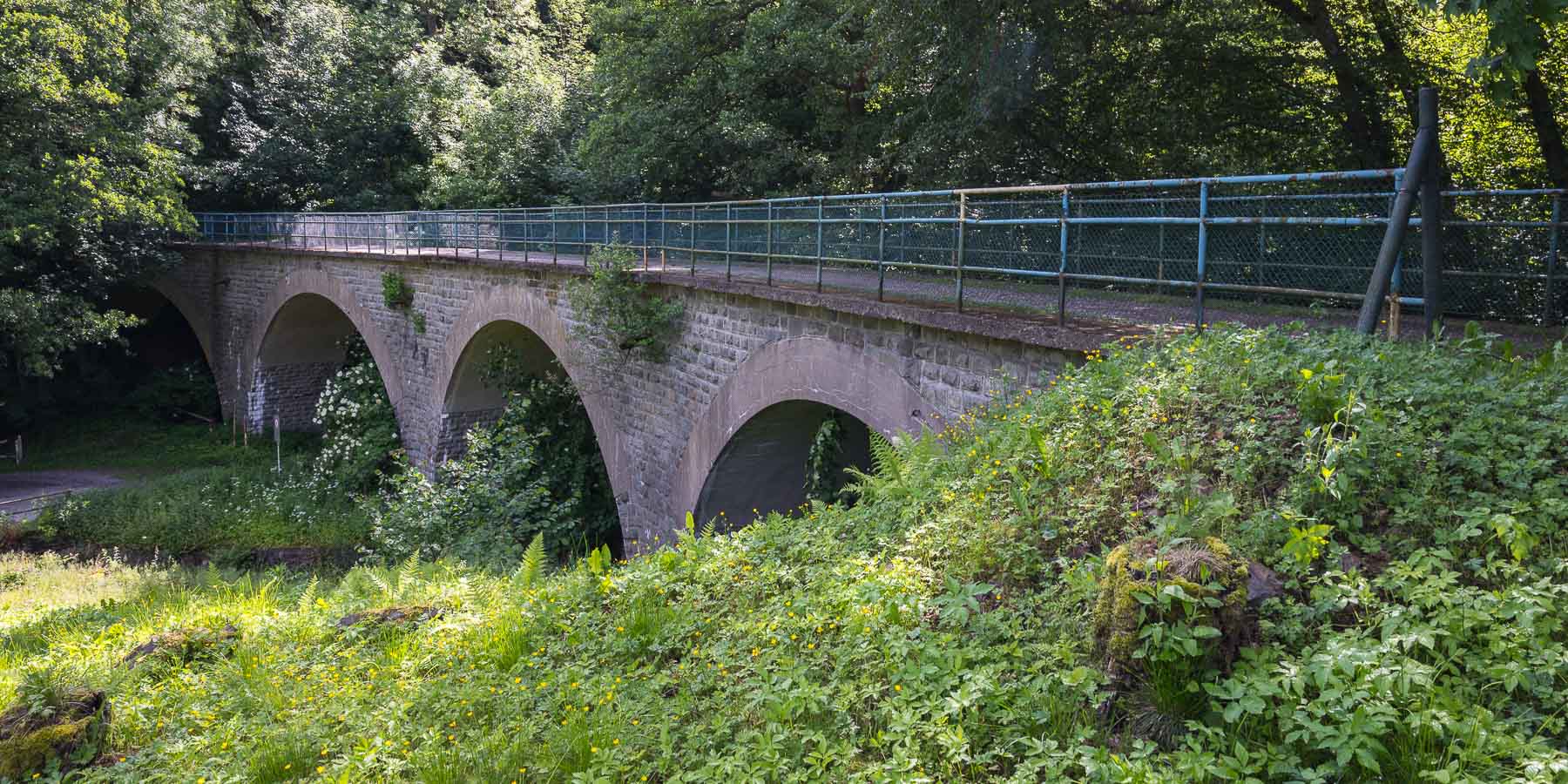 Nach etwa 2 km auf breiten Waldwegen kam ich am Cafe Plessen, einem Ausflugslokal mit Restaurant, vorbei. Hier gibt es einen grossen Parkplatz, so daß dieser Standort auch als Startpunkt geeignet wäre. Wichtig ist, das man die dortige Brücke über den Hasperbach nur für ein Foto überquert. Der eigentliche Weg zur Talsperre führt unten drunter durch.