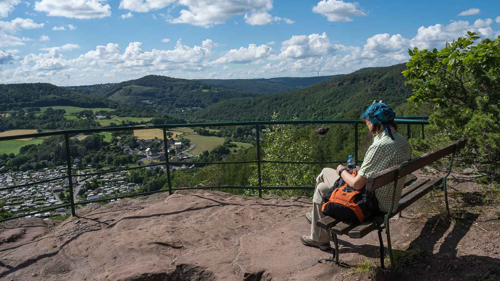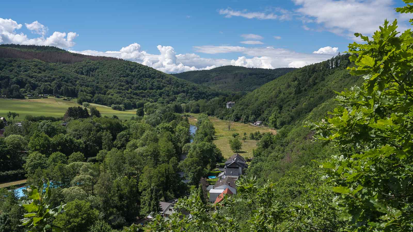 Diesen Eichenwald sollten wir auch so bald nicht wieder verlassen. Geschätzt 90-% der Wanderung verliefen durch den Wald. Zwischendurch gab es einige Aussichtspunkte an denen man einen schönen Ausblick auf das Tal der Rur geboten bekommt. An einem davon machten wir eine kleine Pause und verzehrten dabei unsere mitgebrachten Brote.