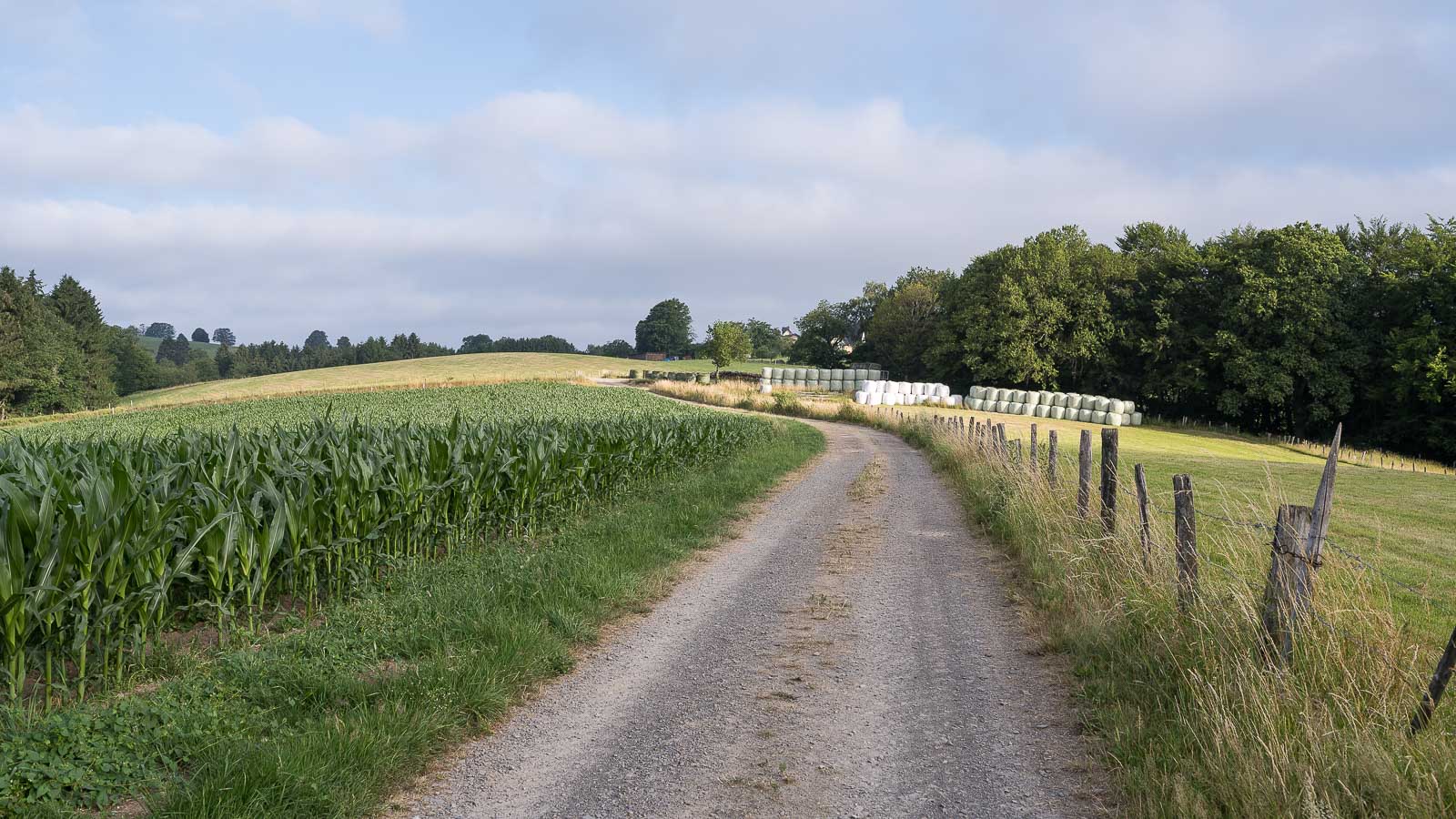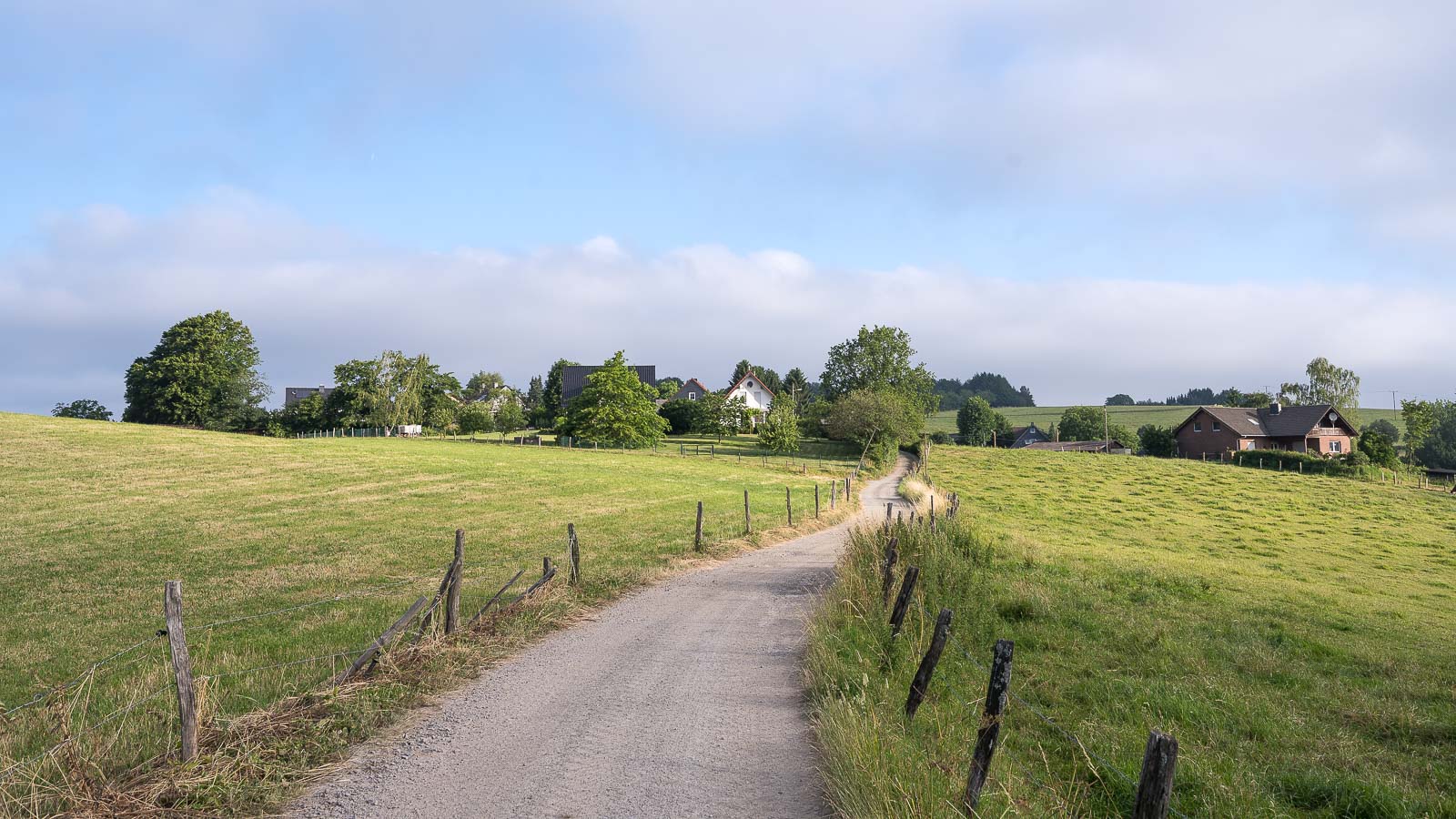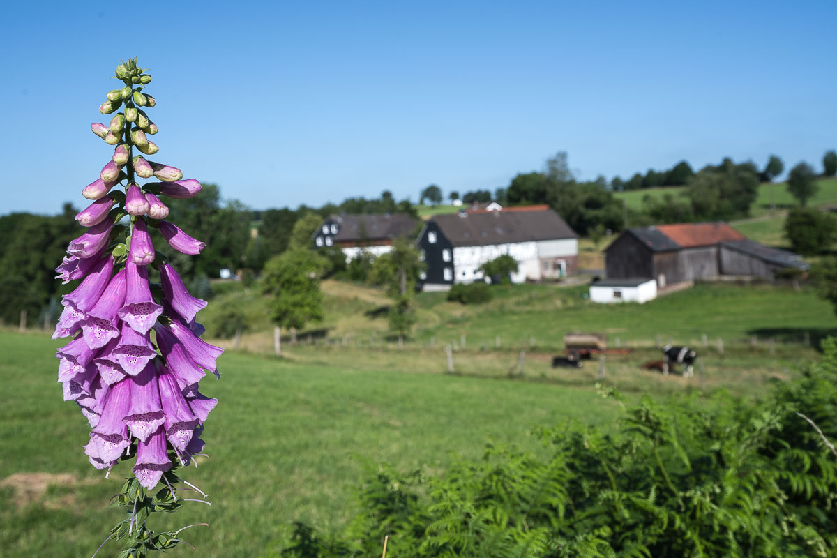 Kurz vor der Knochenmühle bog der Weg scharf rechts ab zu dem Steodterbach. Aus dessem Bachtal ging es wieder langsam bergauf und es wurden mehrere kleinere Weiler passiert. Hier war nichts los, es begegneten mir keine Wanderer, Fussgänger oder ähnliches. Die einzigen Menschenseelen die ich zu Gesicht bekam saßen in Blechkisten mit 4 Rädern dran, waren meist weiblich und fuhren ihren Nachwuchs zu Schule.