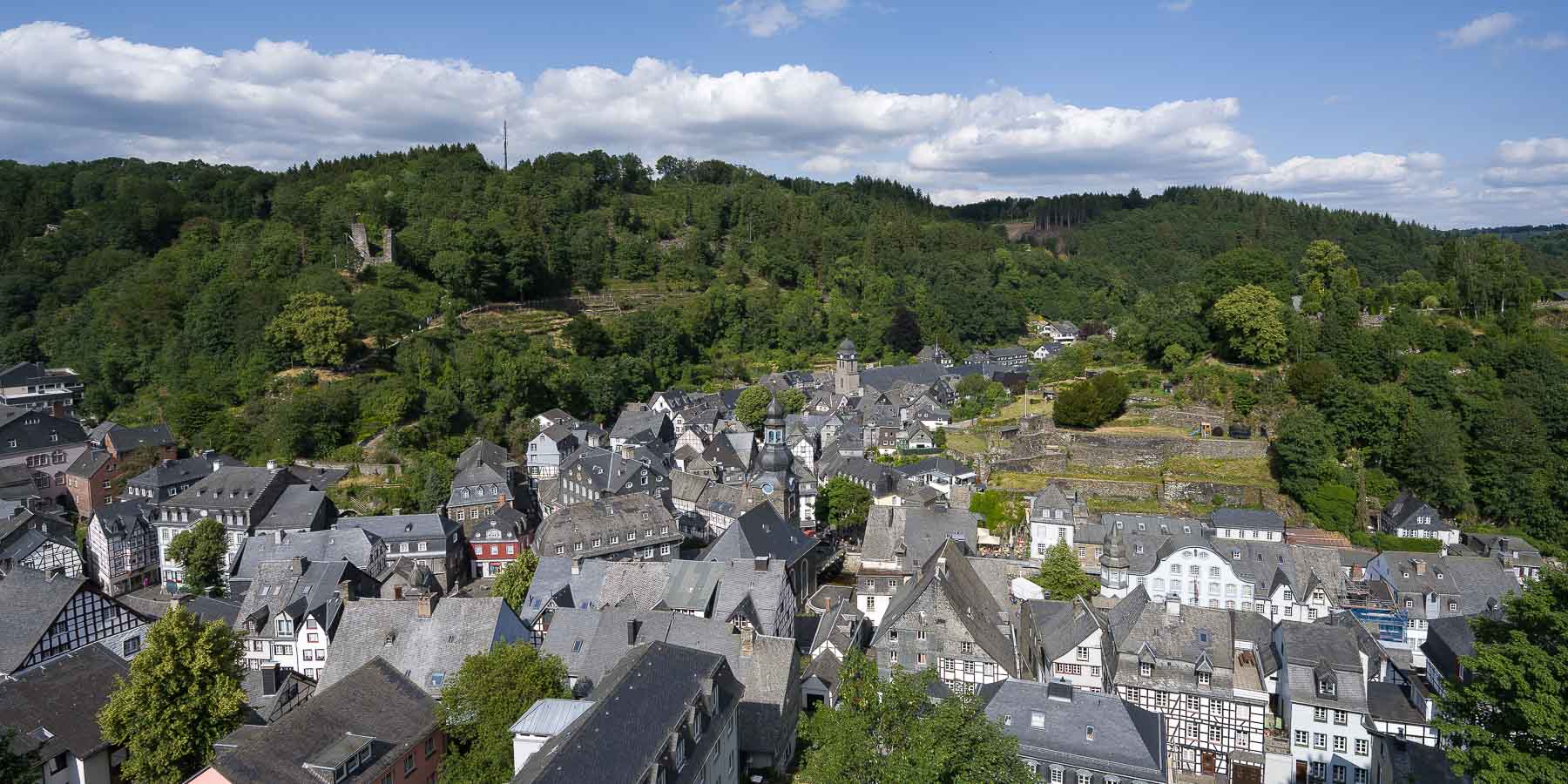 Bereits 1352 erlangte Monschau Stadtrechte. Eine Blütezeit erlebte die Stadt ab Ende des 16. Jahrhunderts durch die Tuchindustrie für die es überregionale Berühmtheit erlangte. Von dem dadurch erlangtem Wohlstand der Stadt zeugen auch heute noch die schönen, alten Bürgerhäuser. Dieses Stadtbild ist die Grundlage für den heutigen Tourismus der für die Stadt ein wichtiger Wirtschaftsfaktor ist.