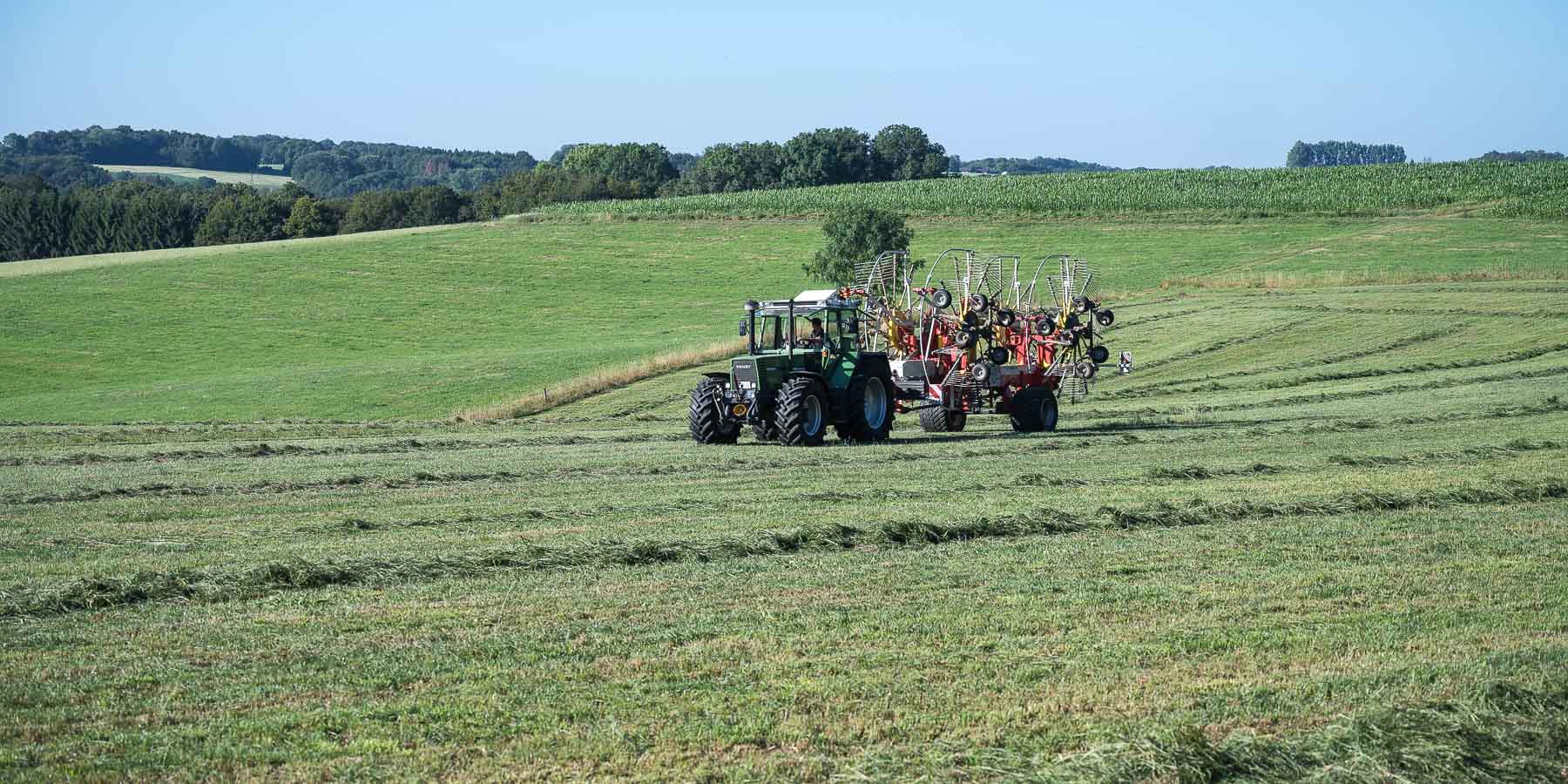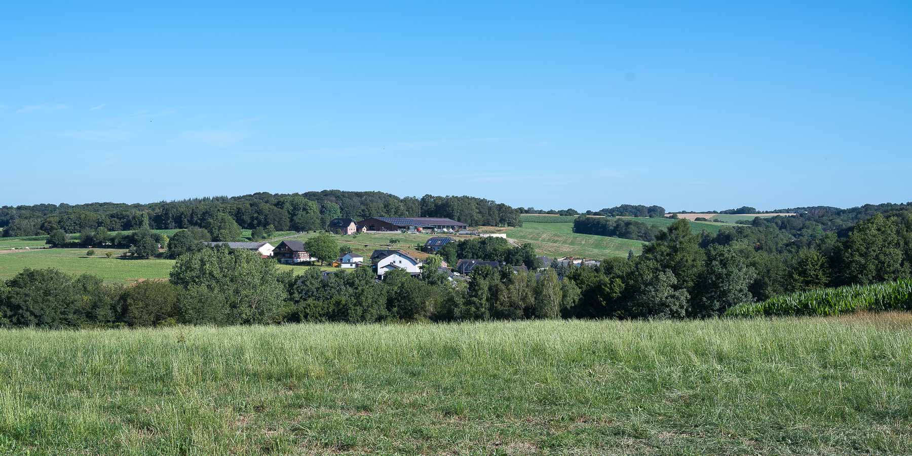 Ich lief die Rundwanderung entgegengesetzt zum Uhrzeigersinn. Die erste Hälfte geht über offenes Gelände und dort wollte ich nicht in der beginnenden Mittagshitze herum laufen. Das zweite Teilstück hingegen versprach durch seinen hohen Waldanteil eher etwas Schatten. Beim Start in Much (8 Uhr) waren es 19 °C.
