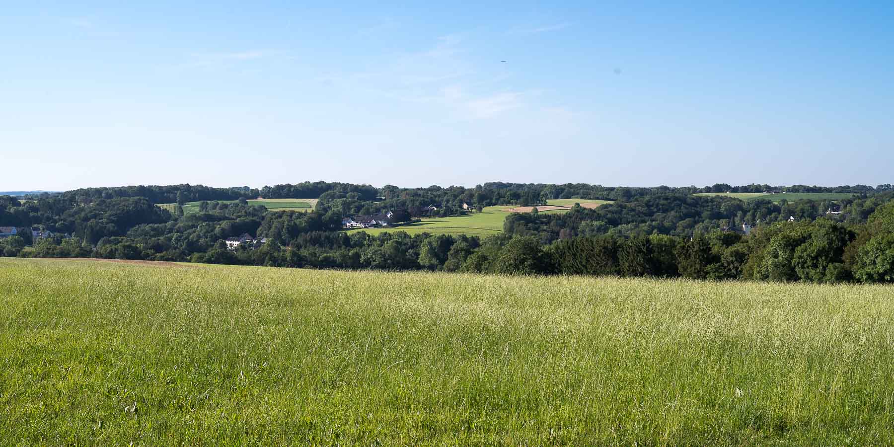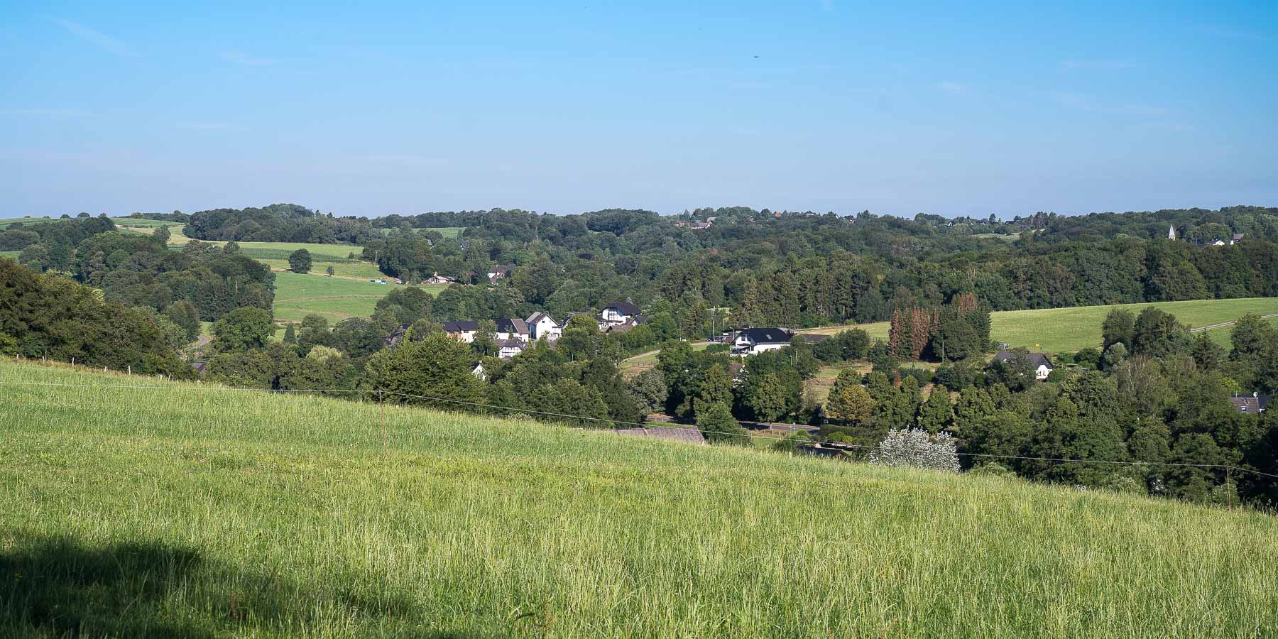 Außerhalb des Ortes verlief die Wanderung über offenes Gelände. Schade das es im Bergischen üblich ist auch den kleinsten Feldweg zu asphaltieren. Ab und an kamen auch noch Autos vorbei gefahren. In den meisten saßen Mütter die Ihren Nachwuchs zum Kindergarten brachten. Überhaupt : dafür das es noch früh war, war unterwegs doch schon einiges los. Der ein oder andere Jogger überholte mich und auch diverse Radfahrer kamen vorbei gebraust. Der erste Teil des Wanderwegs ist für Radfahrer gut nutzbar und auch entsprechend ausgeschildert.