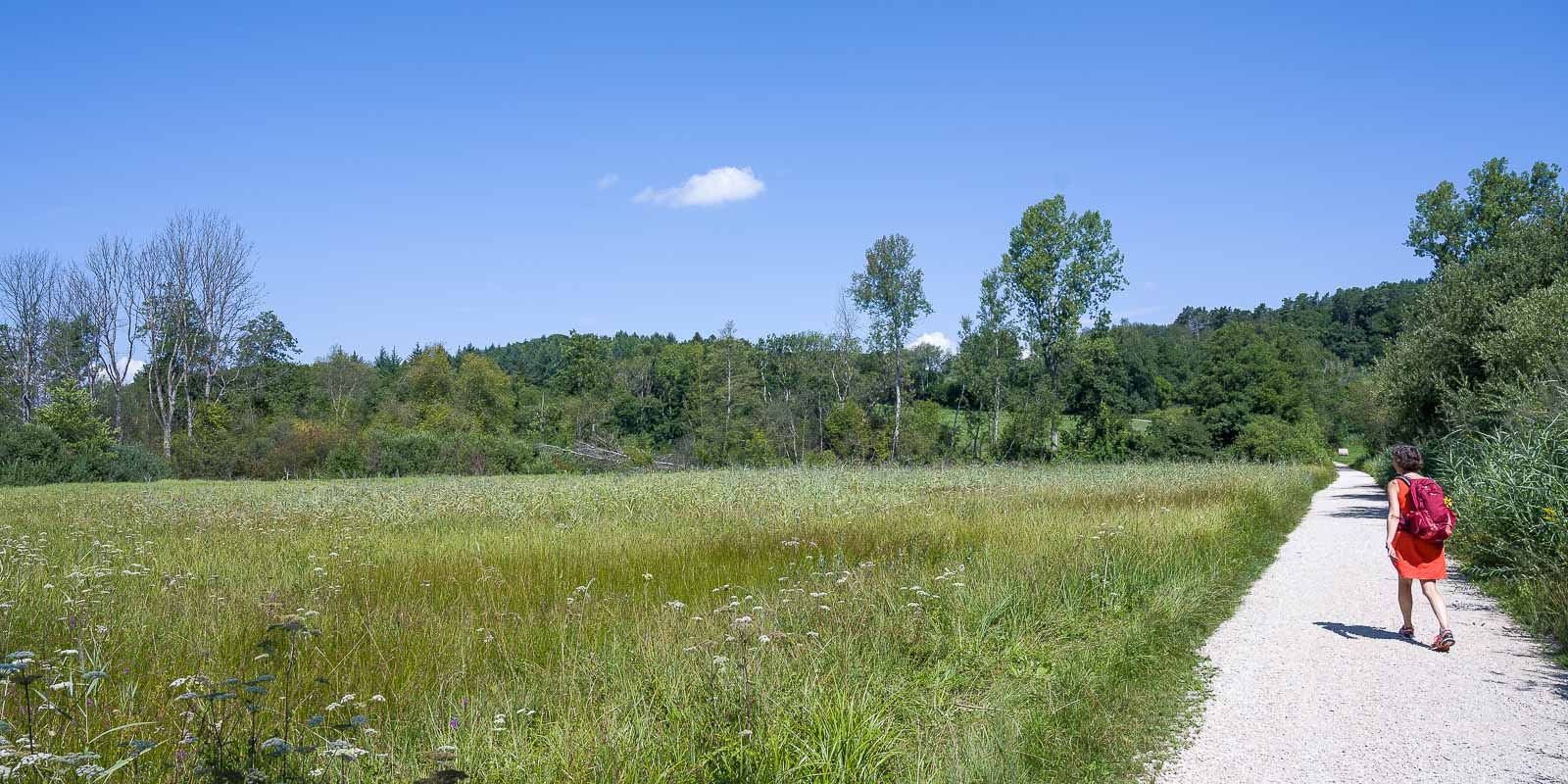 Auf dem Zuweg zum See wurden wir von einem schwäbischen Ehepaar überholt mit dem wir kurz ins Gespräch kamen. Die beiden wanderten nach Bodmann, kannten die Runde um den Mindelsee aber auch. Als sie hörten das wir in Singen Quartier gemacht hätten, empfahlen sie uns doch unbedingt den Hohentwiel zu besuchen. Die Aussicht von dort oben sei phantastisch. Auch ein Cafe auf unserer Seerunde empfahlen sie noch, bevor sie an uns vorbei zogen.