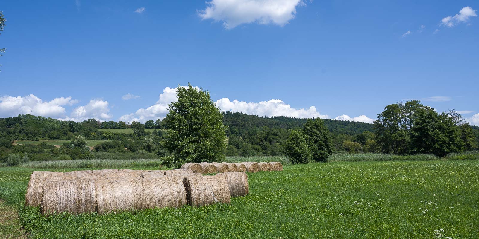 Im Ort liefen wir zunächst ein Teilstück entlang des Mühlbaches. Dieser war zwar eingezwängt in ein ursprünglich mal betoniertes Bett, aber trotzdem gab es dort viele Fische. Zwischen 2 und 20 cm war alles vertreten. Erstaunlich wie schnell die daher flitzten. Ein Bachfoto wurde durch einen übelst kläffenden Köter verhindert. Bevor der noch über den niedrigen Zaun sprang zogen wir besser weiter.