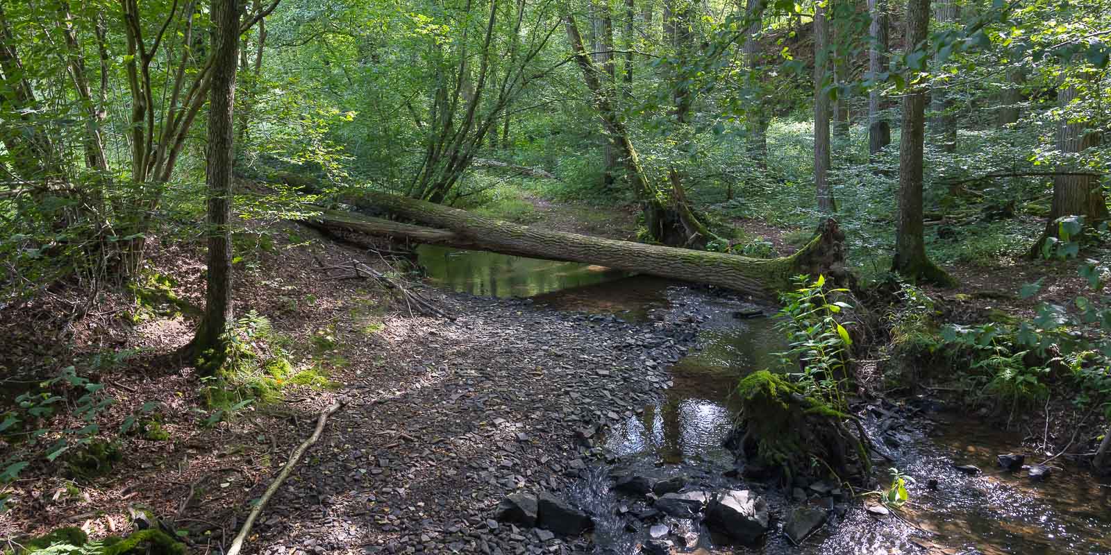 Die Streckenführung war recht einfach. Es ging das Naafbachtal runter bis zur Hofschaft Ingersaul und danach auf der anderen Bachseite wieder zurück bis zur Einmündung des Mühlenbachs in den Naafbach. Danach bog ich rechts ab in das Mühlbachtal. Hier war der Weg sehr naturbelassen, der Mühlenbach mußte 2-3 mal überquert werden, was bei feuchterem Wetter eine Herausforderung sein könnte. Ich fand es echt Klasse, das war Natur pur.