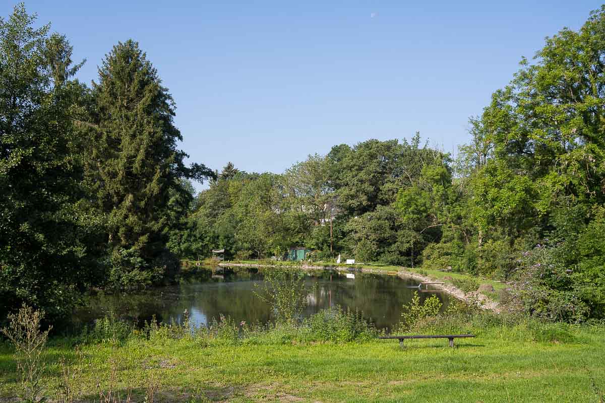 In dem Örtchen Heibach gab es ein kleines Wildgehege mit einem ansehnlichen Hirsch der auch fleißig für Nachwuchs gesorgt hatte. Nach dem Ortsausgang kam noch eine kleiner Fischteich. Ein Stele machte auf das „steinreiche Lindlar“ aufmerksam und hieß mich herzlich willkommen.