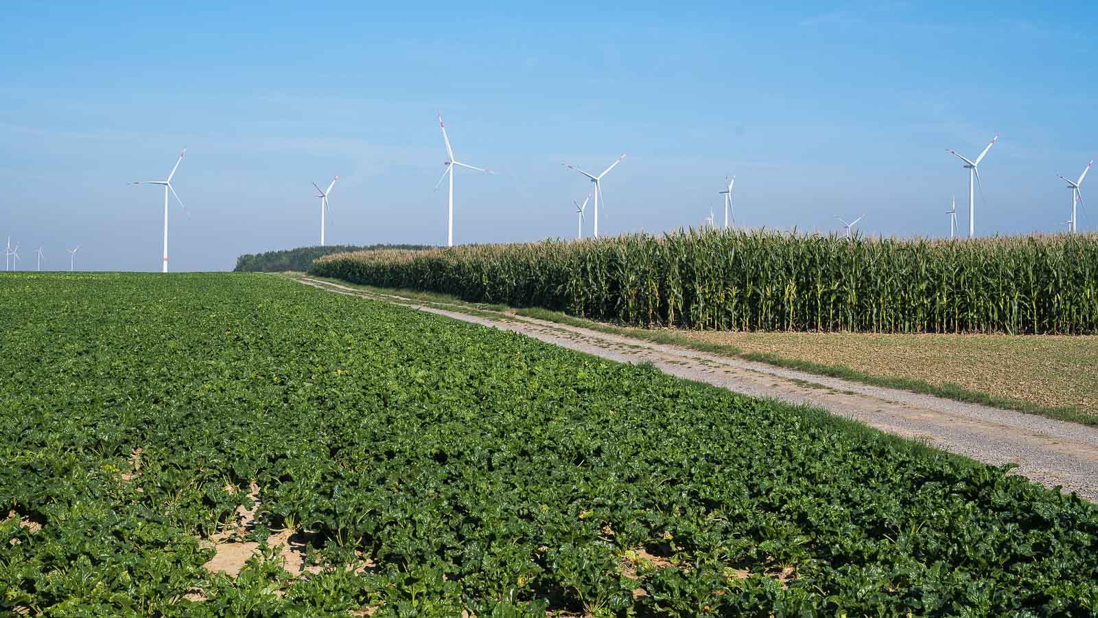 Durch einen Park ging es entlang der alten Stadtmauer zur Burgruine von Kaster und danach durch den Wald entlang der Erft. Leider bekam ich den Fluss nur relativ wenig zu sehen da die Wanderung überwiegend im Wald stattfand. Auf den waldfreien Passagen hatte ich einen weiten Ausblick über die Kappes Felder, auf Windräder und einige dampfende Stromfabriken.