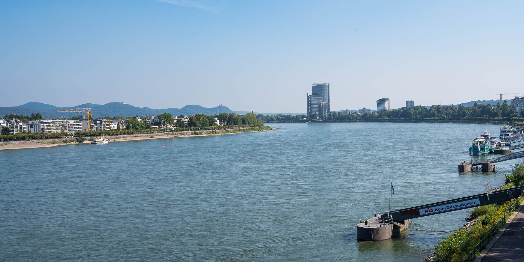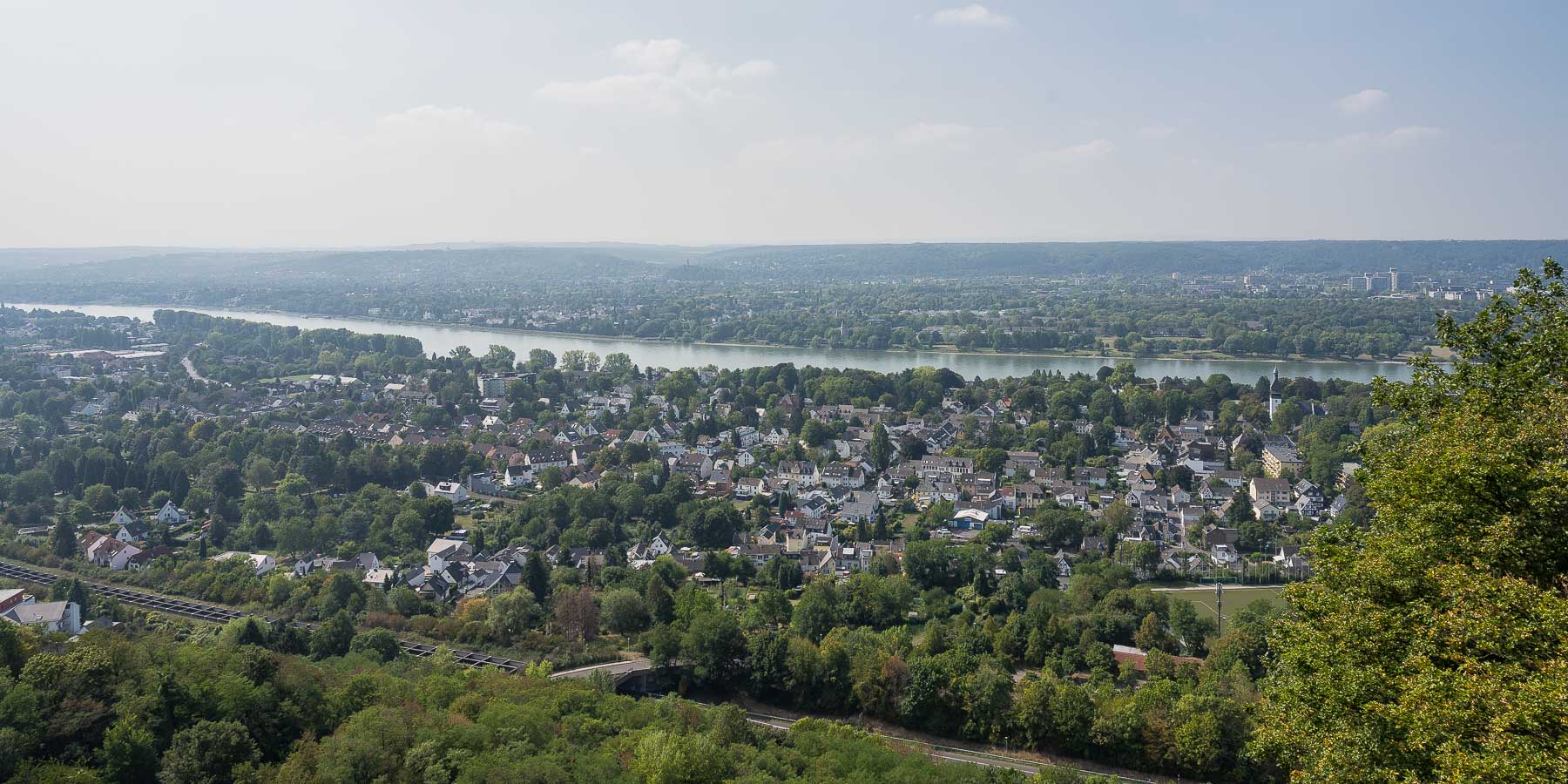 Hier wanderten wir beiderseits des Rheines. Der Fluss wurde am nördlichsten Punkt über die Autobahnbrücke (A562) und am südlichsten mit der Königswinterer Fähre überquert. Auf 14,9 km hat man den Fluss ununterbrochen im Blick.
