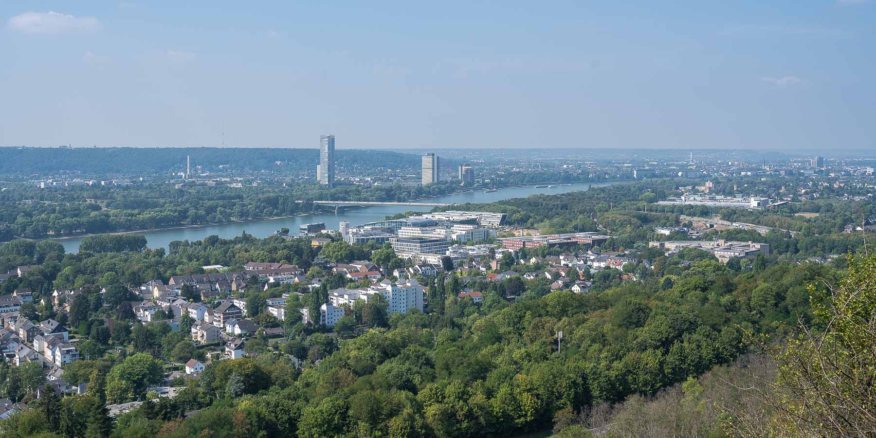Von der Brücke aus hatten wir dann noch eine schöne Aussicht auf das Beueler-Ufer und auch der ansonsten etwas diesige Ausblick in Richtung Siebengebirge wurde etwas besser. In Bonn hatte ich von 1972 bis 1980 studiert. Seitdem bin ich kaum noch in der Stadt gewesen. An den historischen Gebäuden hat sich nicht so viel verändert, die meisten waren heute aber zugehängt weil überall irgendwelche Renovierungsarbeiten am Laufen waren.