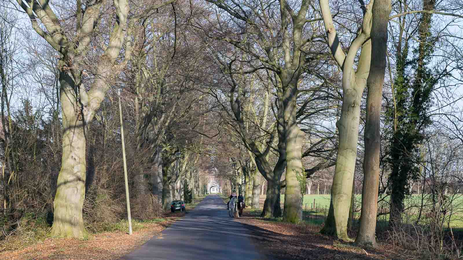 Wir fanden direkt am Schloss, siehe obiges Bild, direkt einen Parkplatz und starteten vorn dort unsere Wanderung. Eine Schlossallee gibt es nicht nur bei Monopoly sondern auch hier. Diese wanderten wir dann entlang und bogen nach einem guten Kilometer rechts ab in die Felder.