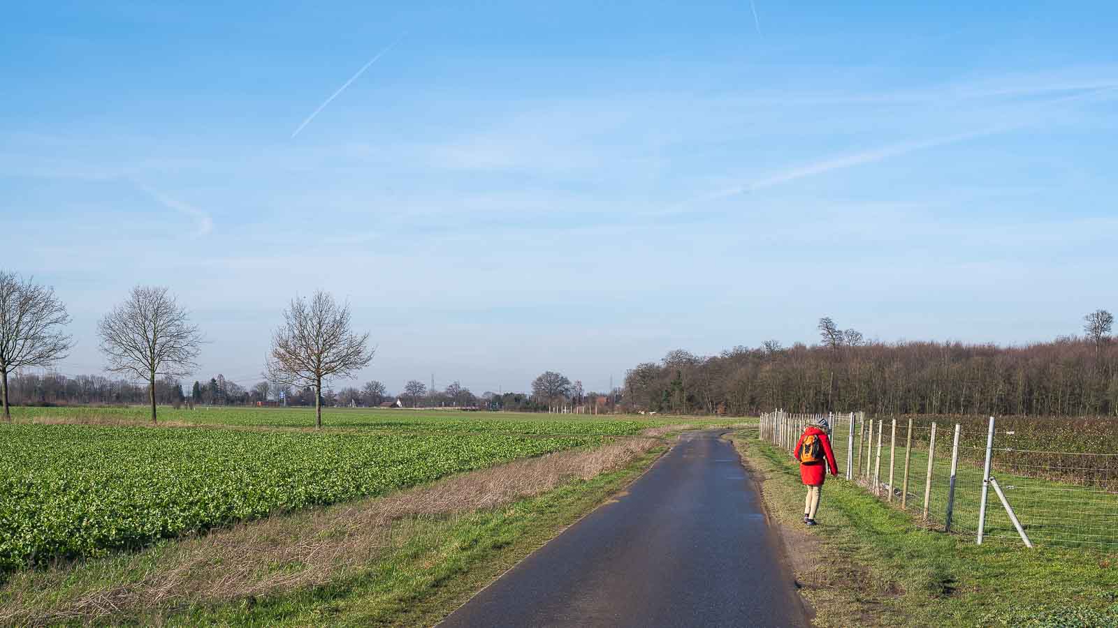 Es ging dann als weiter über den Acker. Dafür das es mitten in der Woche war begegnete uns doch einiges an Spaziergängern und Radfahrern. Auch den ein oder anderen Reiter bekamen wir zu Gesicht. In der Gegend gab es einige Reiterhöfe und selbst an kleineren Gehöften hatte anscheinend jeder sei Pferd mit einer kleinen Wiese fürs Pferd in Hausnähe.