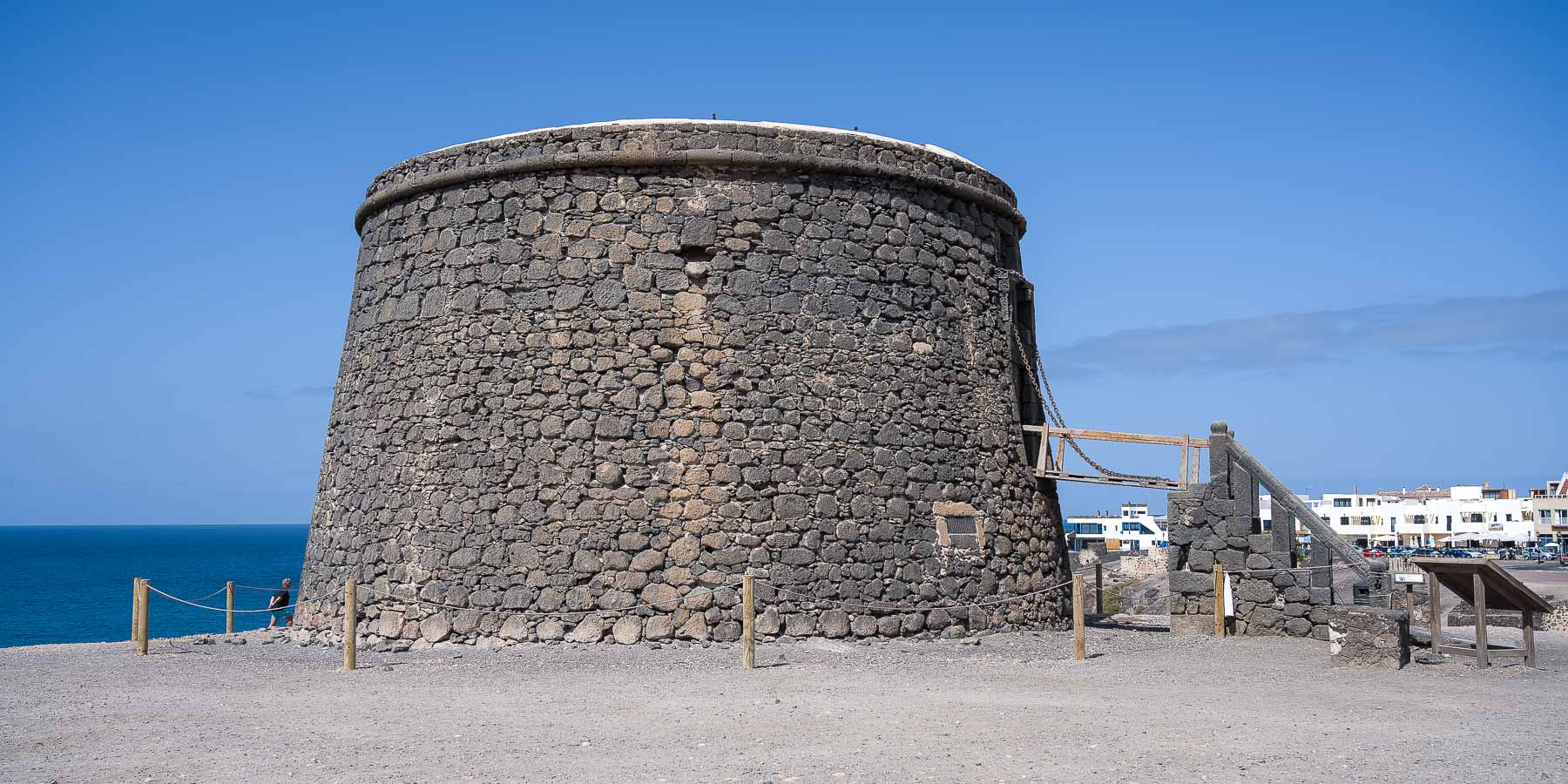 El Cotillo liegt ganz im Norden von Fuerteventura. Von Costa Calma aus fuhren wir fast 1,5 h. Unterwegs schauten wir uns die Gegend an und genossen die Anfahrt. Im Ort parkten wir neben dem Hafen an dem Wehrturm der seit 1741 die Hafeneinfahrt bewacht.
