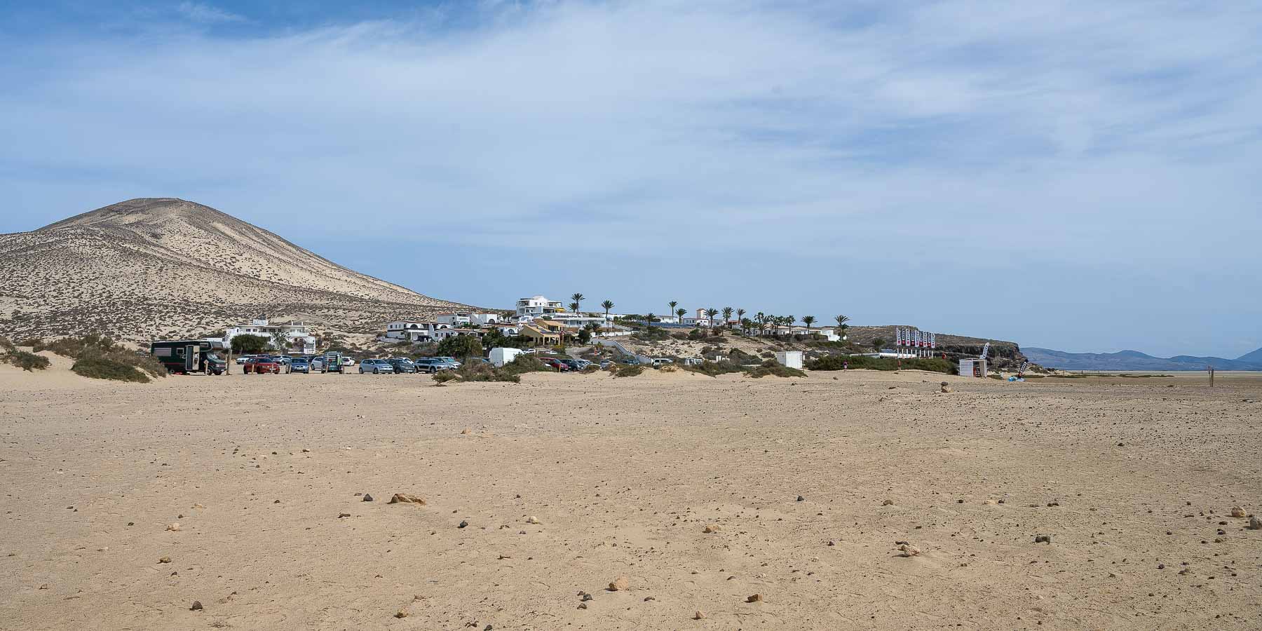 Nach Risco del Paso kann man ganz gut mit dem Wagen fahren. Auf der hier als Autobahn ausgebauten FV-2 gibt es, aus Richtung Morro Jable kommend, eine als Playa Sotavento ausgeschilderte Ausfahrt. Die letzten 500 m bis zum Parkplatz werden auf einer gut befahrbaren Schotterstraße zurück gelegt.