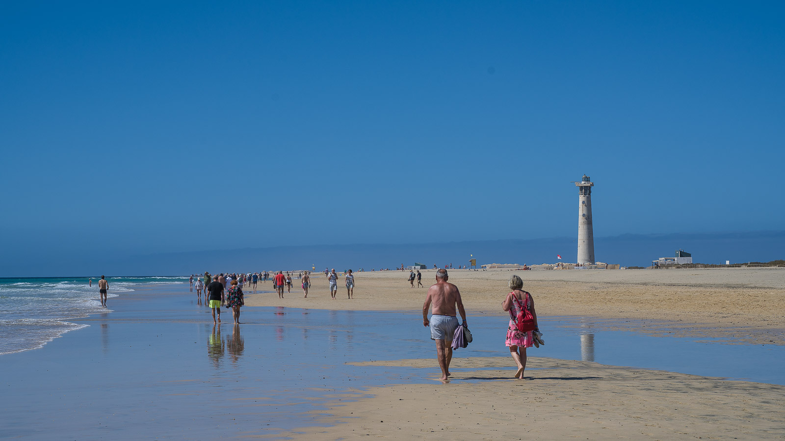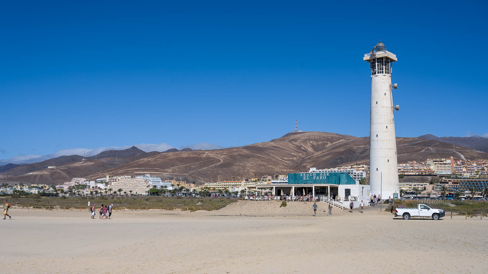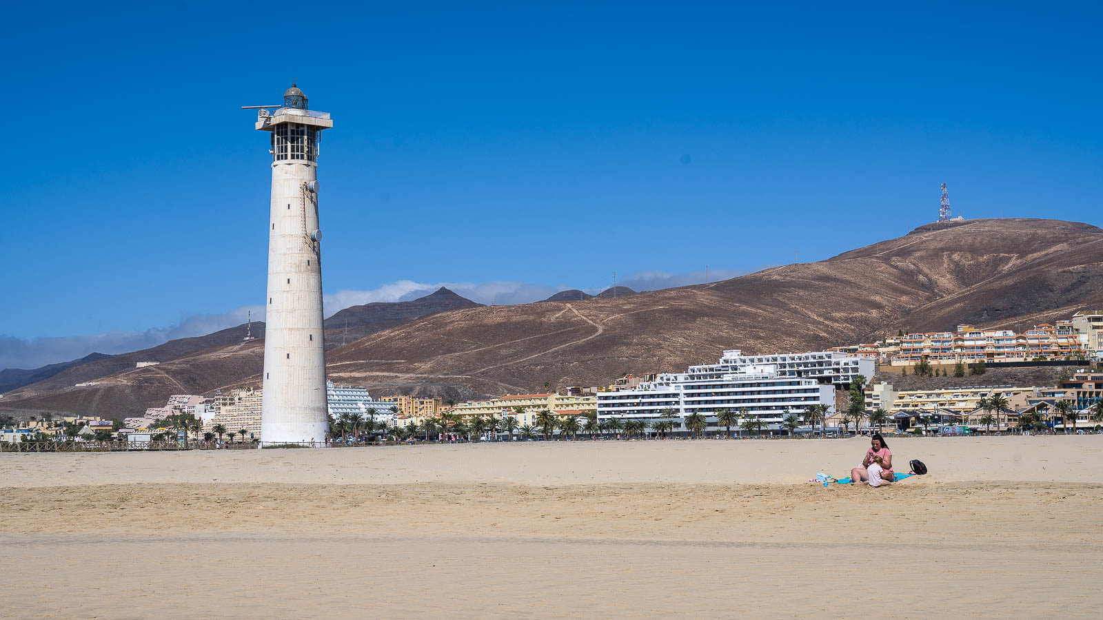 Von Costa Calma aus fuhren wir über die FV2 bis zu dem gut sichtbarem Leuchtturm am Jandia Playa. Hier suchten wir uns einen Parkplatz und wanderten dann über einen mit Holzbohlen ausgelegten Weg zum Leuchtturm / Strand. Der Turm kann leider nicht bestiegen werden, direkt dahinter gibt es eine Strandbar die wir uns schon mal für den Rückweg vormerkten.