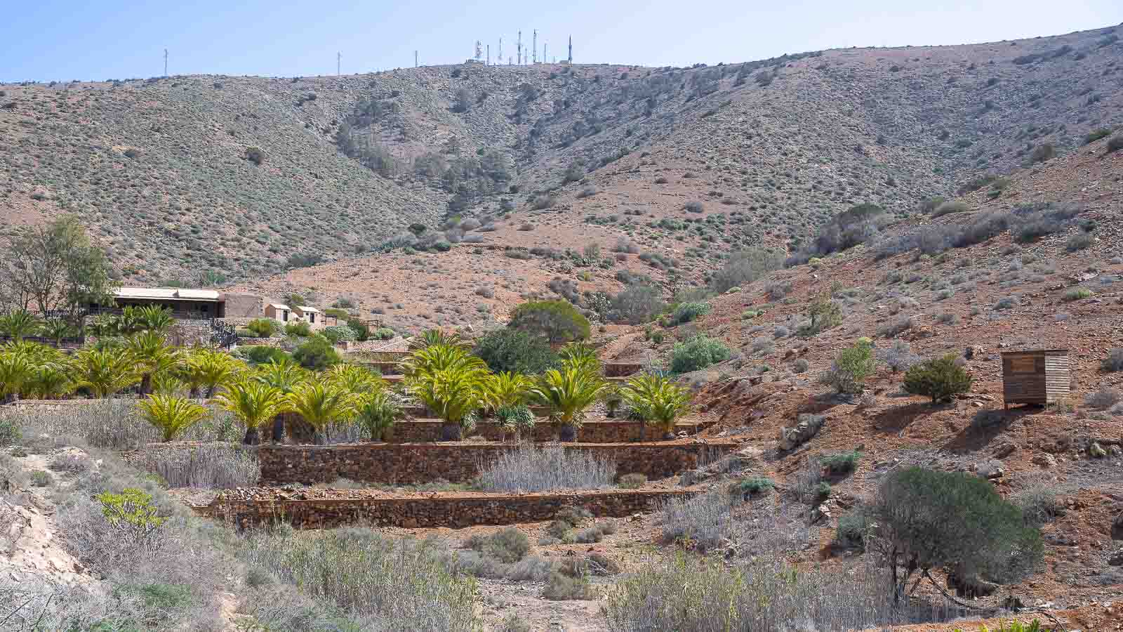 Unser Wanderführer bejahte die Titelfrage bezüglich der Wälder auf Fuerteventura. Die von ihm vorgeschlagene Wanderung führte von Betancuria nach Vega de Rio Palmas. Für den Rückweg wird der Bus vorgeschlagen. Da dieser nicht so häufig fährt und wir einen Teil der Strecke, den Aufstieg in Betancuria zum Bergkamm, schon gelaufen waren, starteten wir in Vega de Rio Palmas und wollten nur bis zum höchsten Punkt der Wanderung, dem Morro del Cortijo (637 m). Bei dieser Variante sind dann Hin- und Rückweg identisch.