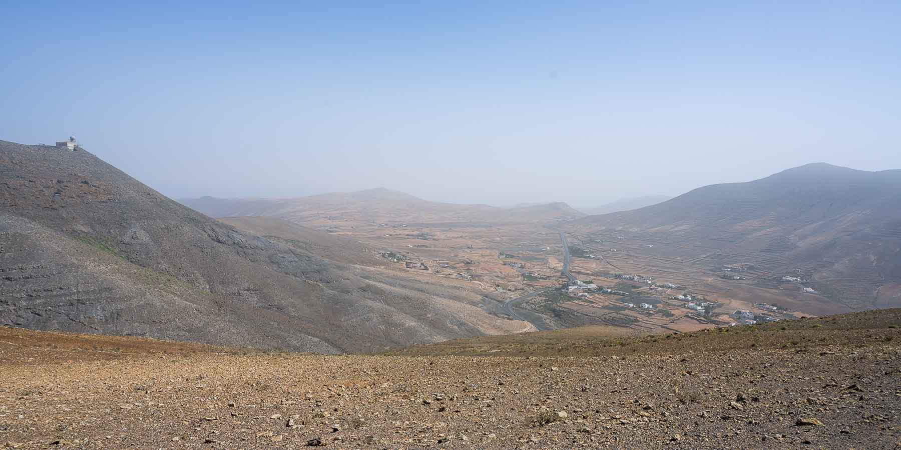 Oben auf dem Bergkamm angekommen genossen wir die Aussicht obwohl es doch recht diesig war. Bei klarem Wetter kann man angeblich bis nach Lanzarote blicken. Wegen des diesigen Wetters gab es unterwegs auch nur wenige Bilder. Die Wanderung lebt sehr von der Aussicht, ansonsten gibt es unterwegs nur Steine, Steine und nochmals Steine.