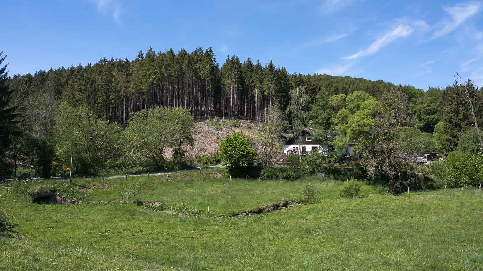 In meinem Rother, Bergisches Land wurde ich fündig. Von dem Örtchen Dohrgaul, etwas südlich der Hansestadt Wipperfürth, hatte ich zuvor noch nie etwas gehört. Petra war der Ort schon eher geläufig, weil sie in ihrer Motorradfahrer-Phase immer wieder mal auf der Suche nach entlegenen Seitensträßchen, bevorzugter Weise asphaltierte Wirtschaftswege, hier unterwegs war.
