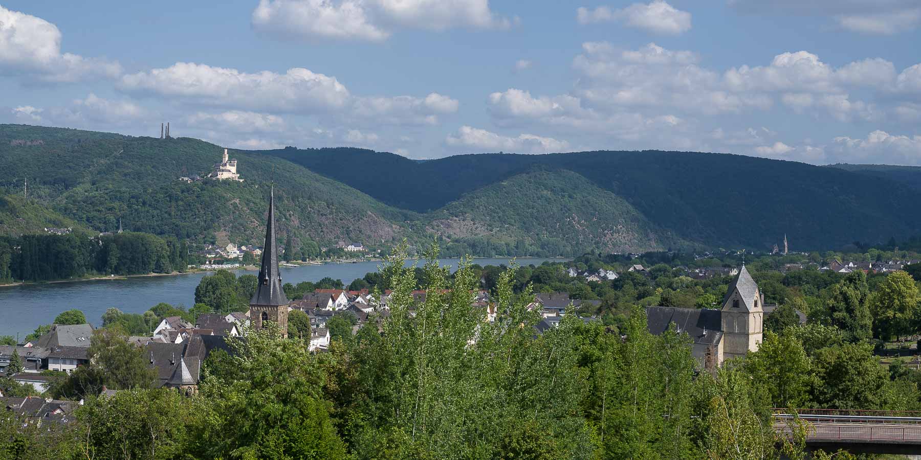 In Rhens angekommen wäre die Wanderung eigentlich zu Ende gewesen. Wir machten jedoch noch einen kleinen Stadtrundgang der in meinem downloadbarem Track enthalten ist. Der Ort ist wirklich sehr hübsch und hat eine Besichtigung verdient. Entlang der Stadtmauer erreichten wir das alte Stadttor und dahinter gleich den Marktplatz mit einigen alten Fachwerkhäusern. Wir waren auf der Suche nach einer Gelegenheit für einen Einkehrschwung, wurden aber nicht fündig. Es gab zwar 2 -3 Lokale die aber alle noch geschlossen hatten. So wanderten wir hinab bis zum Rhein und genossen die Aussicht über den Fluss. Auch hier fanden wir keine Einkehrmöglichkeit. Schade eigentlich, denn das hübsche Örtchen hätte sicherlich mehr Besucher verdient.