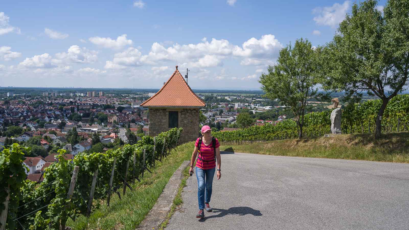 Nach zwei Tagen mit regnerischem Wetter, am Vortag besuchten wir die Kunsthalle in Mannheim, wollten wir wieder wandern. Da ich für die Waldwege Matsch befürchtete, suchten wir uns aus unserem Rother Wanderführer eine Weinbergwanderung in Heppenheim aus (Nr. 15 im Führer). Die Wanderung ist größtenteils identisch mit der von dem lokalem Winzerverband angelegten Erlebnispfad „Wein und Stein“.