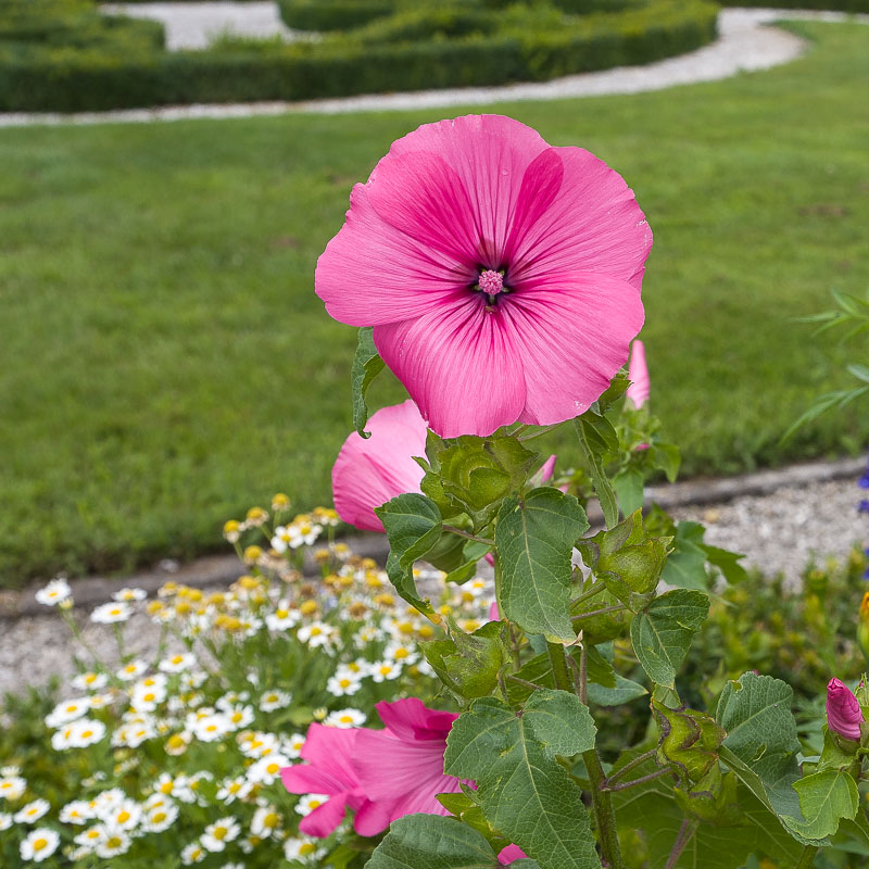 Weitere Stationen waren der Merkur Tempel und die Moschee mit ihrem hohen Minaret, welches sich schön im Wasser spiegelte. So langsam wurde das Wetter auch etwas besser, so daß ich auf dem Rückweg zum Hauptgebäude des Schlosses noch Gelegenheit für einige Blümchenbilder bekam.