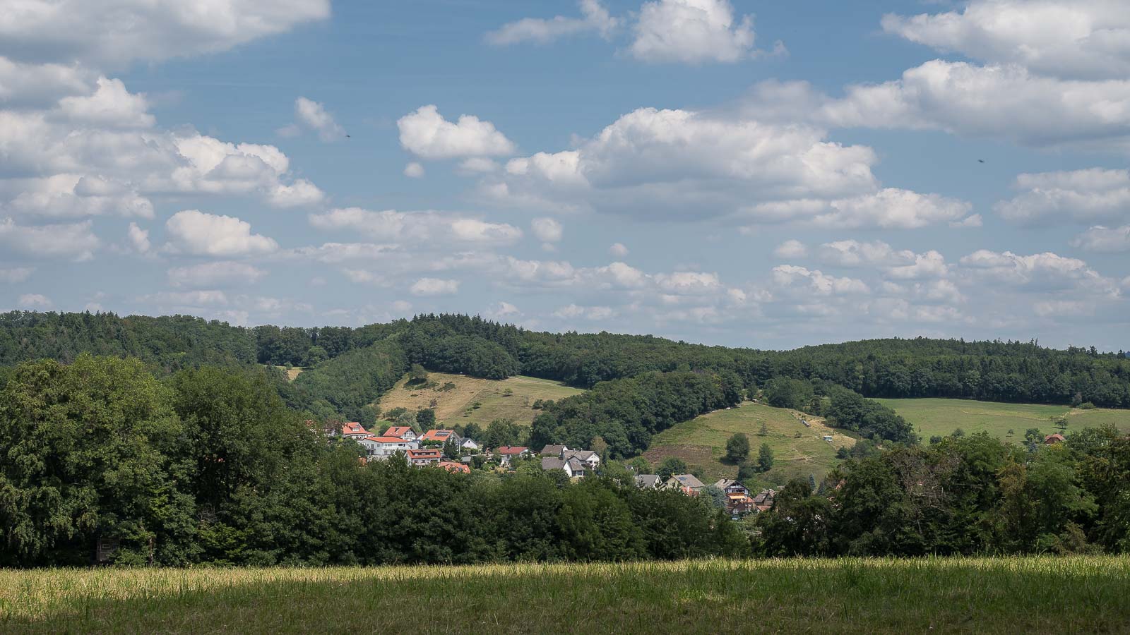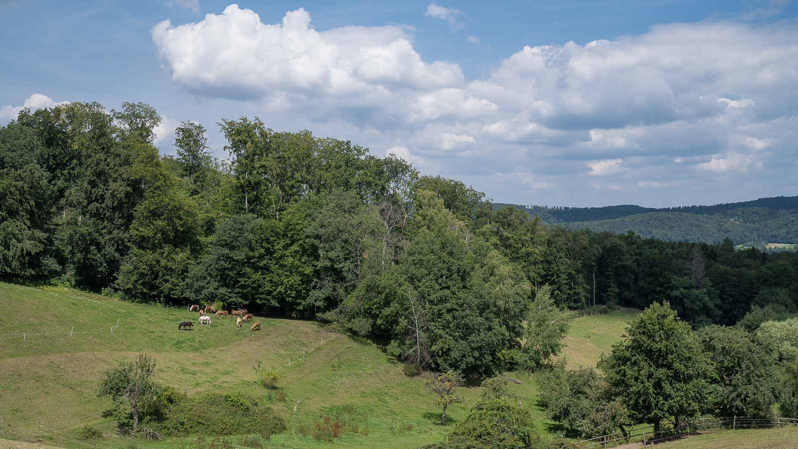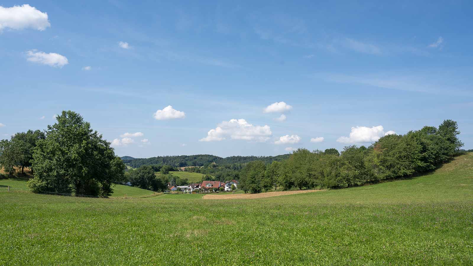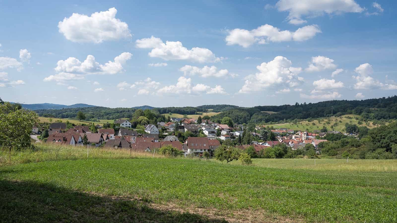 Hinter dem Zigeunerkopf erreichten wir das Örtchen Juhöhe. Der Ort liegt auf einem Pass und hier ist die Grenze zwischen Baden-Würtemberg und Hessen. Wir kamen an einigen Wanderparkplätzen vorbei die auch ganz gut belegt waren, muss wohl eine schöne Wandergegend sein. Außerdem gab es noch einige Gaststätten mit Aussengastronomie an denen wir aber vorbei zogen.