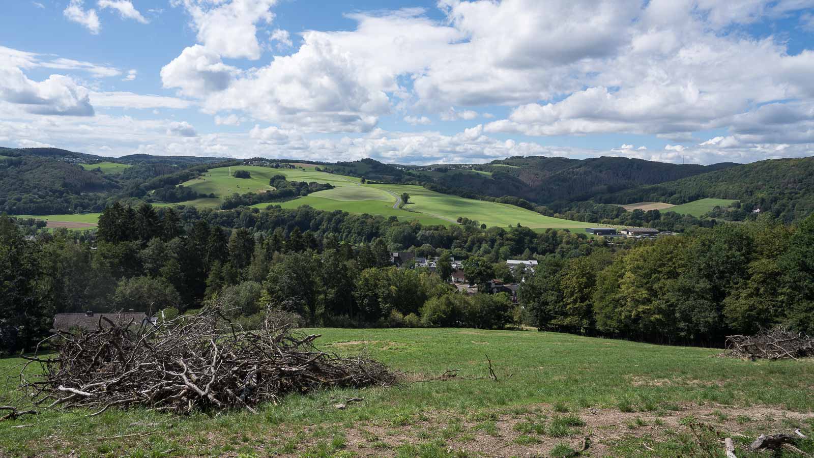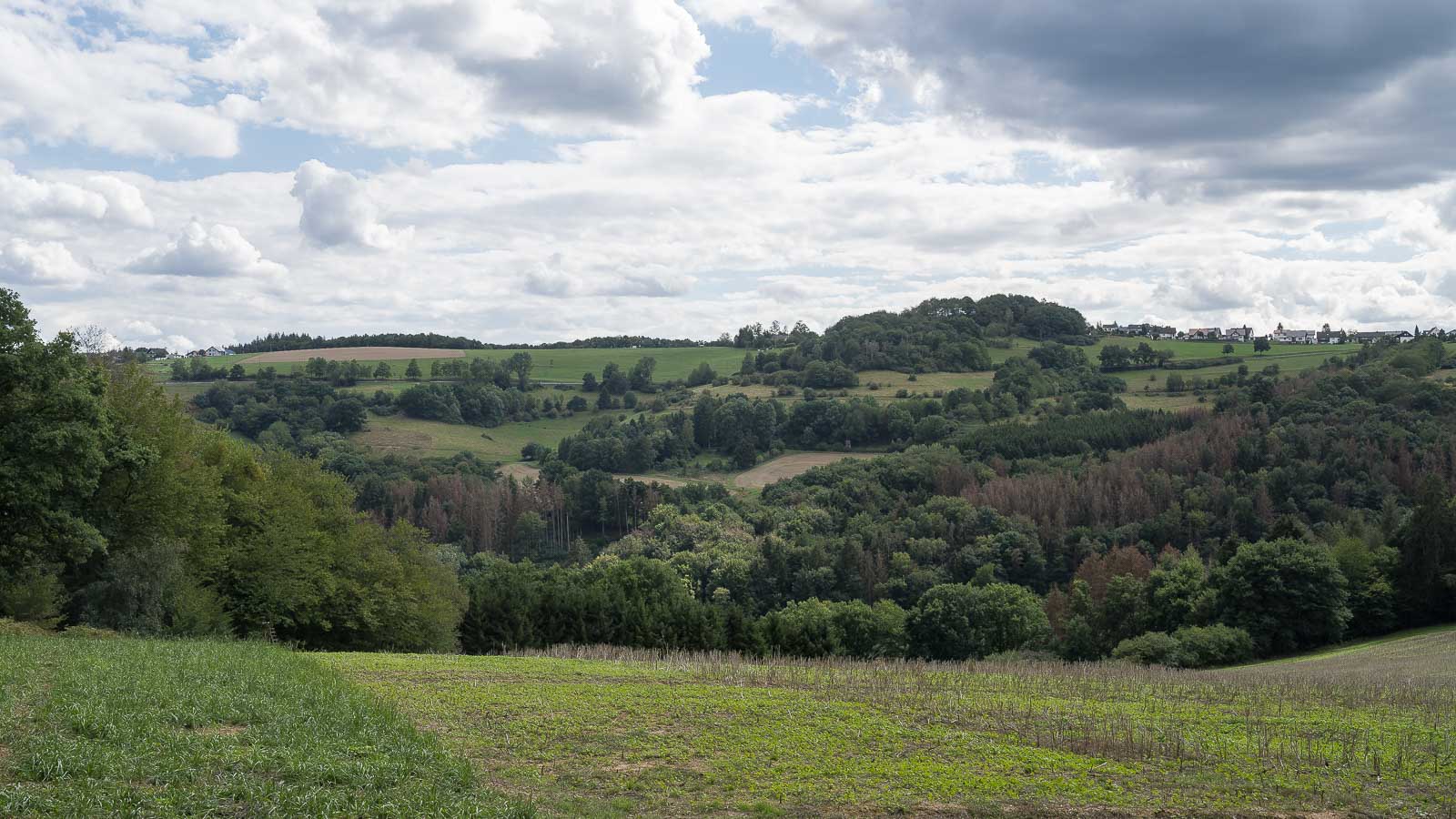 Aussicht über das Wiedtal beim Aufstieg zum Roßbacher Häubchen