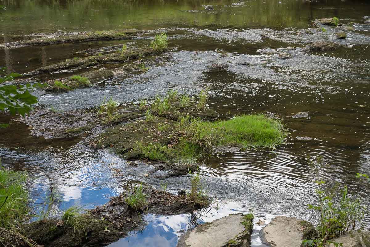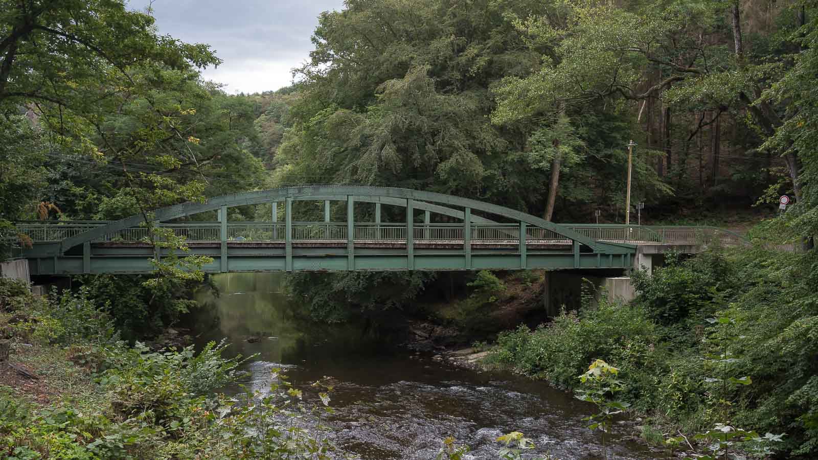 Im Wiedbachtal überquerten wir das Flüsschen kurz vor dem Hotel Wiedfriede. Hier gibt es einen grossen Parkplatz und die Rundwanderung könnte auch gut von hier aus gestartet werden. Das Restaurant war geöffnet und einige Besucher saßen im Biergarten. Durch diesen geht auch der Wanderweg der anschließend nah am Fluss entlang verläuft. Dies ist die bei weitem schönste Teilstrecke. Sie erinnerte uns etwas an die Eine oder Andere Wanderung die wir an der Wupper gemacht hatten.