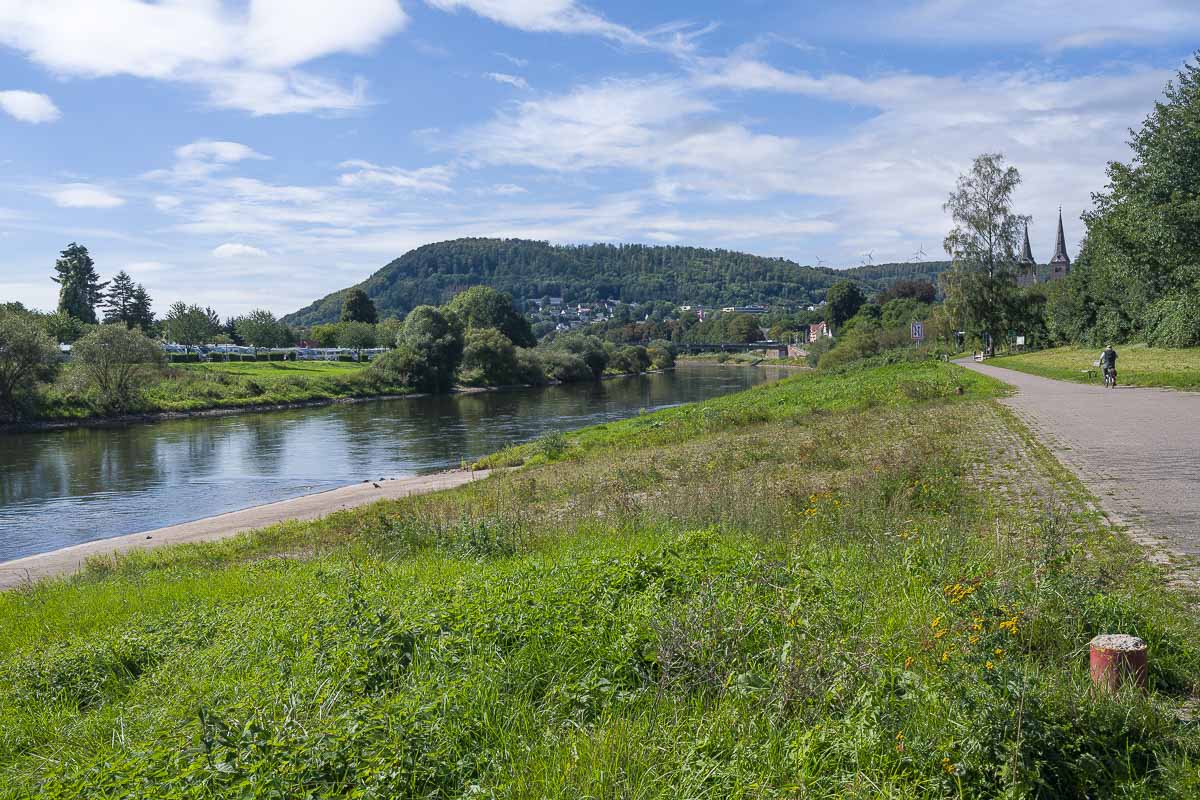 Am Fluß wanderten wir danach in Richtung Corvey. Wem das zu lang ist, der kann natürlich auch mit dem Wagen dorthin fahren. Uns machte es aber nichts aus, auch wenn wir auf dem Rückweg das gleiche Teilstück nochmals laufen mußten (siehe Karte am Ende).