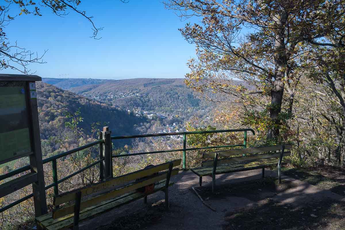 Das wir erst relativ spät gestartet waren gereichte uns heute nur zum Vorteil. Am Morgen war es noch neblig, aber als wir zu Mittagszeit in Mariawald ankamen war der Nebel vollständig verschwunden und wir hatten eine tolle Aussicht über die herbstliche Eifel.