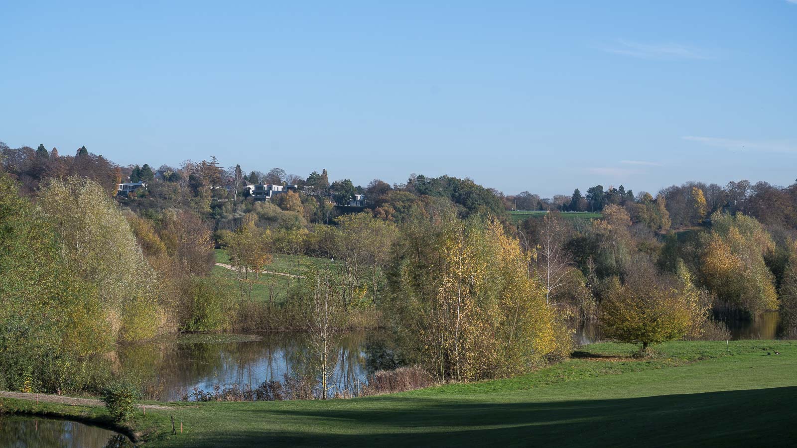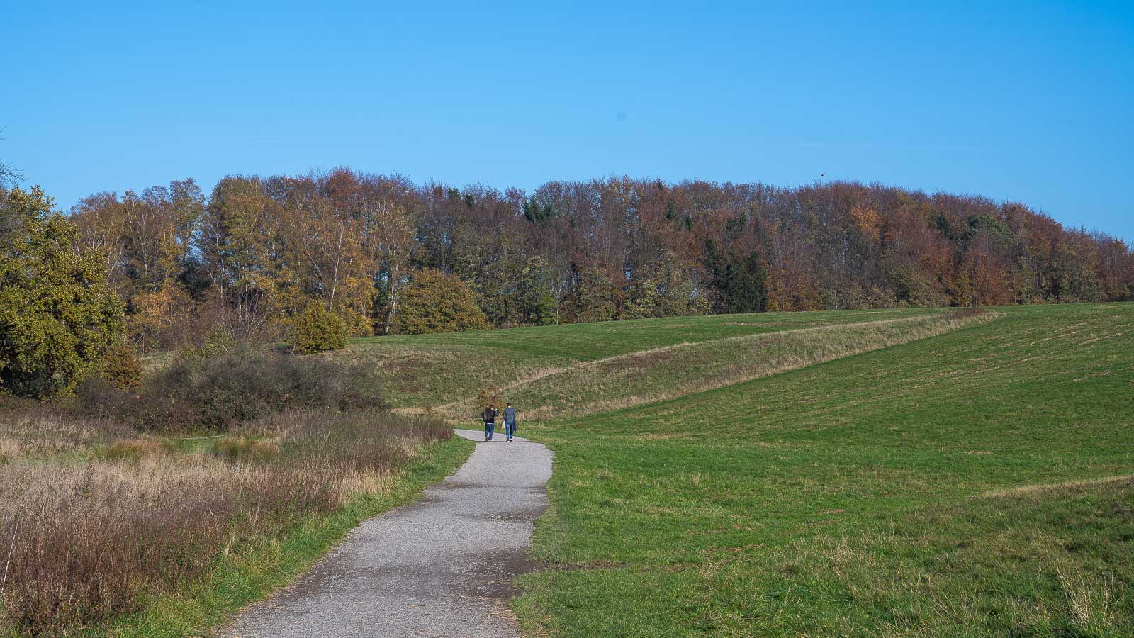 Für einen Dienstagmittag war da ganz schön was los. Spaziergänger mit und ohne Kinderwagen, Jogger, Radfahrer und Gassigänger waren unterwegs. Allerdings war das Wetter auch vom feinsten, ein toller Herbsttag mit angenehmen Temperaturen. Ich möchte aber nicht wissen was hier am Wochenende los ist. Da wären wir dann wieder bei der zuvor schon erwähnten Eifel …..