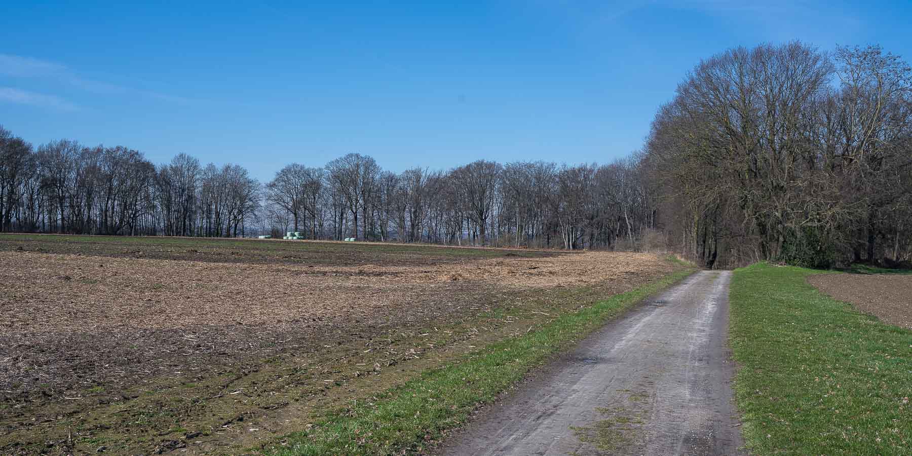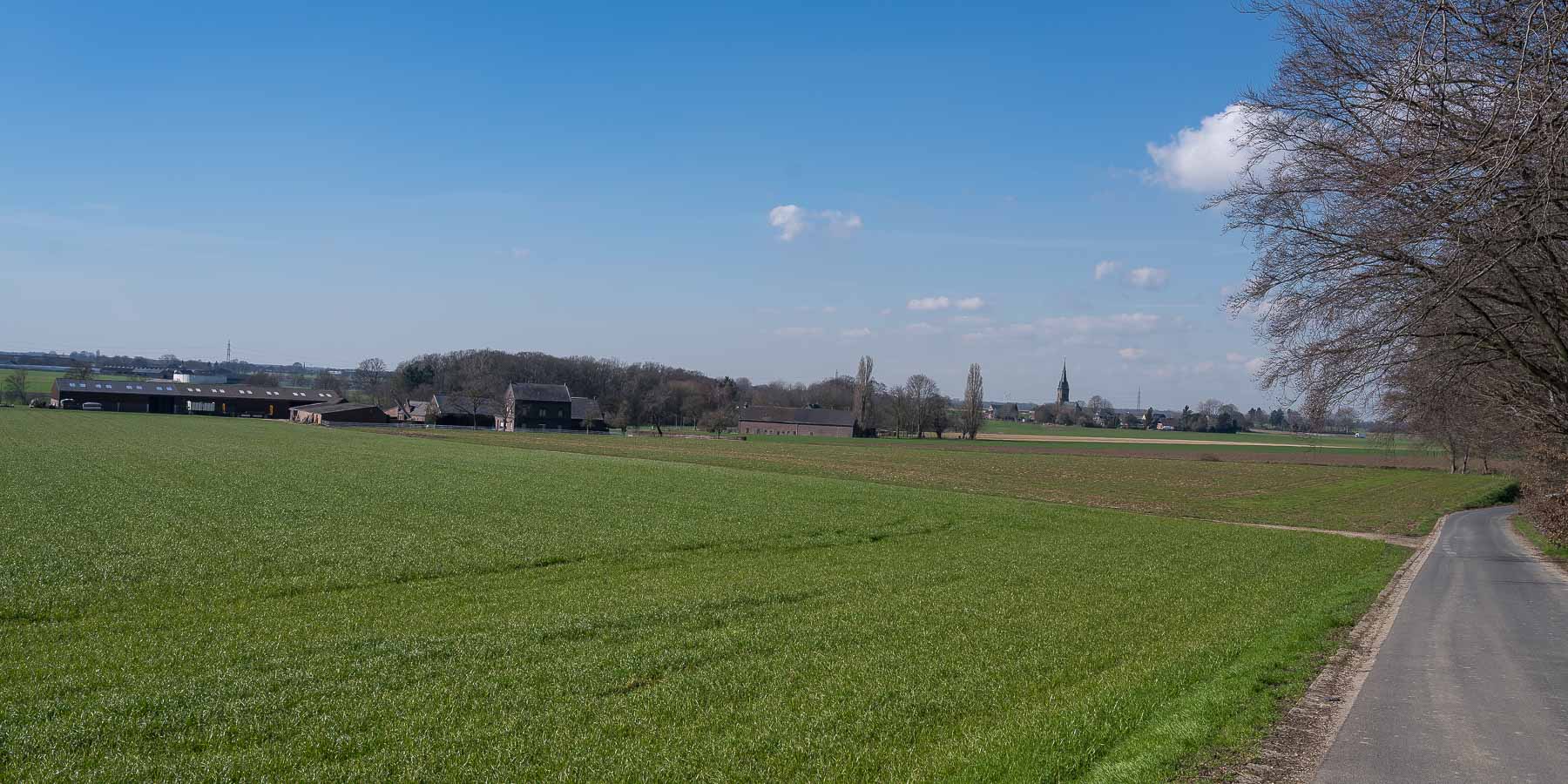 Nach knapp der Hälfte der Wegstrecke erreichte ich das Örtchen Dornbusch. Dort gibt es in einem Nebenort eine bemerkenswert große Backsteinbasilika die schon weitem sichtbar war. Zur Abwechslung führte der Weg hier längere Zeit über offenes Feld mit weiten Ausblicken über das flache Land.